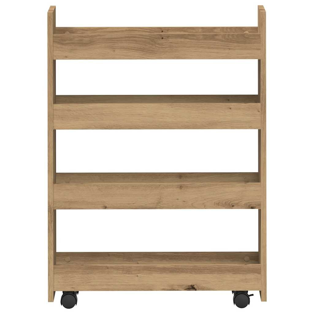 4 szintes kézműves tölgy színű szerelt fa keskeny tárolókocsi
