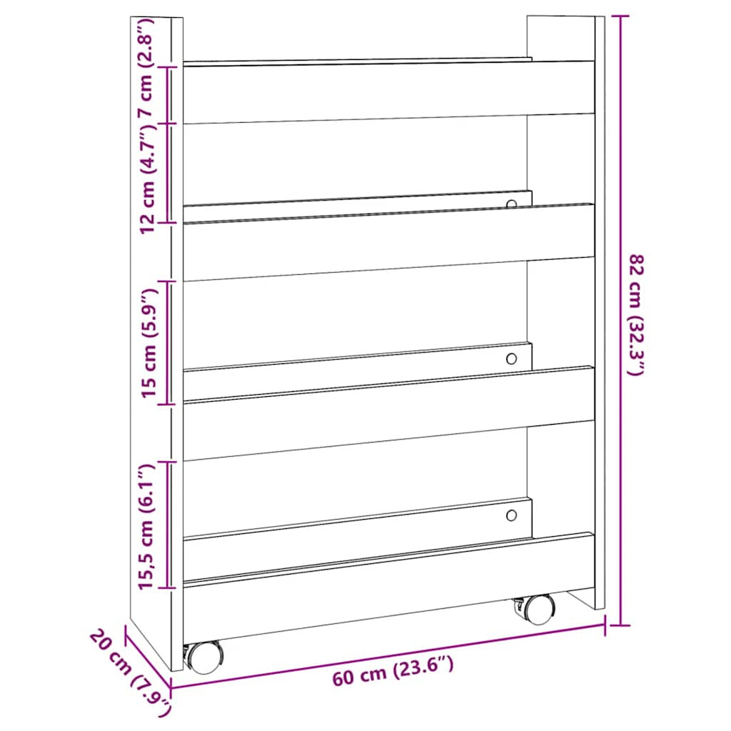 Ez a keskeny tárolókocsi dekoratív és praktikus kiegészítője lesz otthonának. Stabil és tartós anyag: A szerelt fa tartós és stabil anyag sima felülettel, amely ellenáll a nedvességnek, a vetemedésnek és a hasadásnak, így megbízható választás különféle célokhoz.Bőséges tárolóhely: A keskeny tárolókocsi bőséges helyet biztosít alapvető holmijai kézközelben történő rendezett tárolásához.Könnyen mozgatható: Ez a guruló kocsi a mellékelt négy forgókeréknek köszönhetően könnyen áthelyezhető a kívánt helyre. A kerekek közül kettő lezárható, így a szekrény stabilan a helyén marad.Széles körű alkalmazás: Ezt a tárolókocsit igényeitől függően használhatja a nappaliban, a konyhában, vagy a fürdőszobában, keskeny formájának köszönhetően akár kis helyen is elfér.