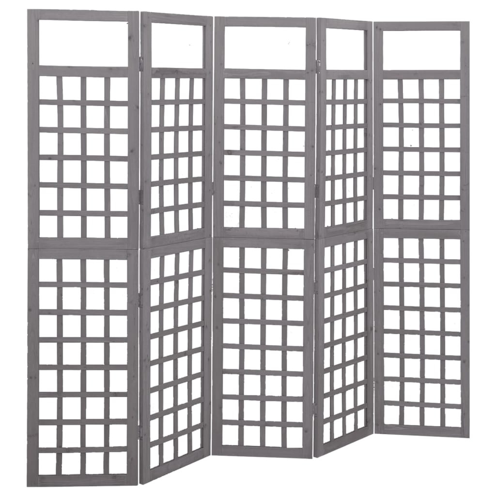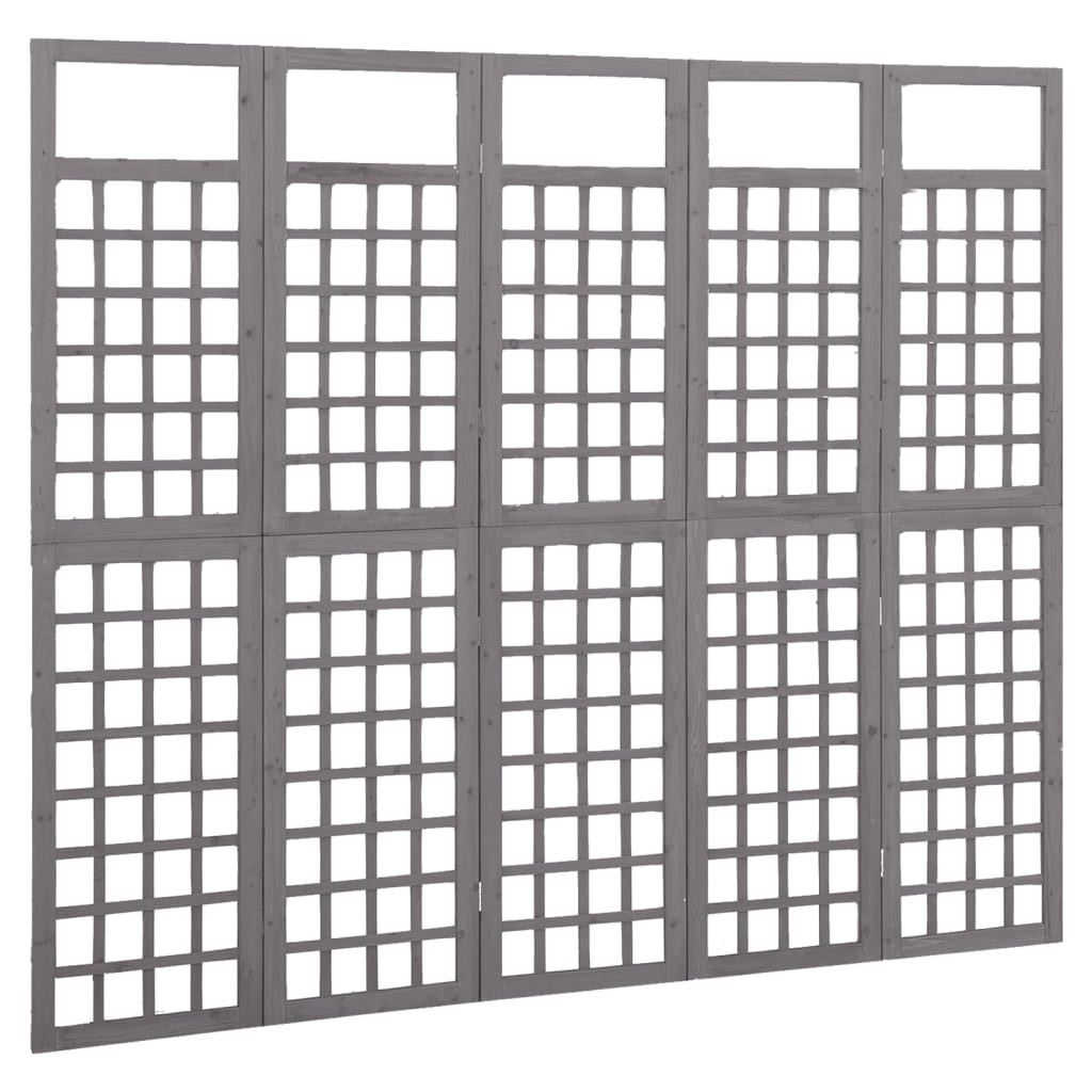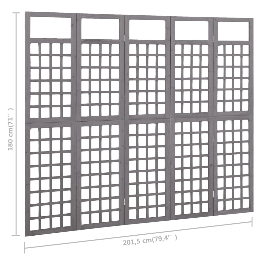 5 paneles szürke fenyőfa térelválasztó/lugasrács 201,5 x 180 cm