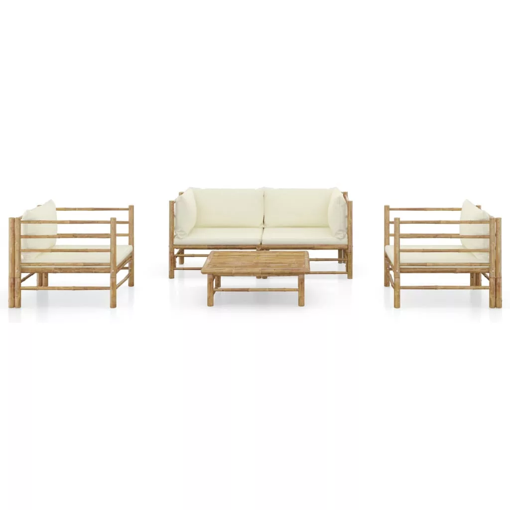 5 részes bambusz kerti bútorszett krémfehér párnákkal