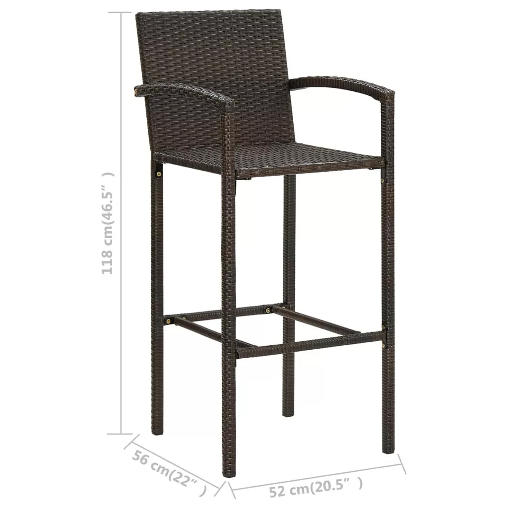 5 részes barna polyrattan kültéri bárszett kartámasszal