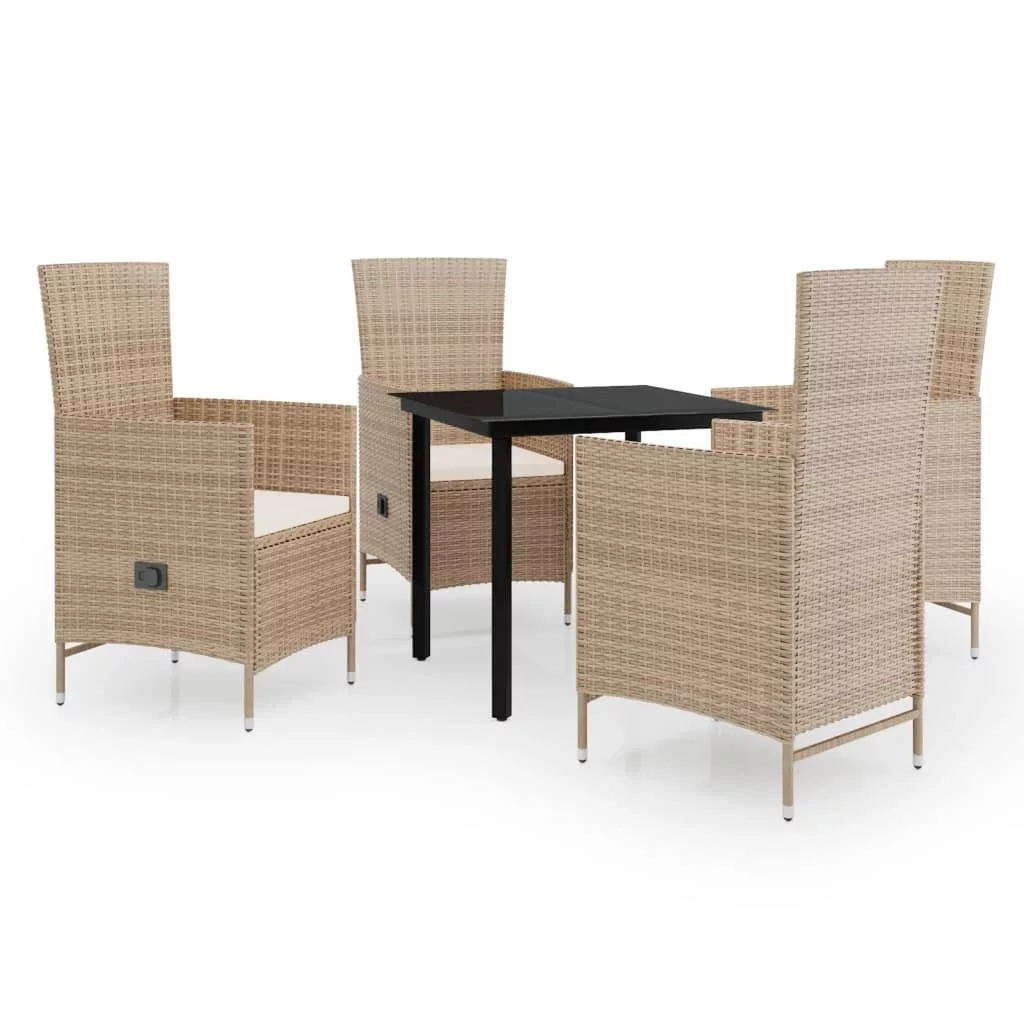Ez a stílusos kerti étkezőgarnitúra úgy lett megtervezve, hogy kertje vagy udvara középpontja legyen. Nagyszerű választást jelent a szabadban töltött étkezéshez vagy pihenéshez! Az asztal és a székek porszórt acél vázzal rendelkeznek, így erősek, stabilak és mindennapos kültéri használatra alkalmasak. A vízálló polietilén rattannak köszönhetően a székek könnyen tisztíthatók és strapabírók. A háttámla hátradönthető az oldalán található gomb meghúzásával. A könnyű súlyú kialakításnak köszönhetően könnyen mozgatható. A vastag párnák extra kényelmet biztosítanak. A kevés karbantartást igénylő poliészter huzatok levehetők és moshatók. Emellett a sima üveg asztallap nedves ruhával könnyen tisztítható, és tökéletes ételek, italok és egyéb dísztárgyak elhelyezésére. Figyelem: Kültéri bútora élettartamának meghosszabbítása érdekében javasoljuk, hogy tisztítsa rendszeresen, és ne hagyja feleslegesen a szabadban, védelem nélkül.Tisztítás: Használjon enyhe szappanoldatot.Tárolás: Ha lehetséges, tárolja zárt, hűvös, száraz helyen. Ha a terméket a szabadban tárolja, védje vízálló burkolattal. Eső vagy havazás után törölje le és szárítsa fel a felesleges vizet vagy havat a sík felületekről. Hagyjon elegendő légkeringést a nedvességből eredő károk elkerülése érdekében. Maximum 110 kg ülésenként. Ügyeljen a nyílt tűz és más erős hőforrások veszélyére a termék közelében.