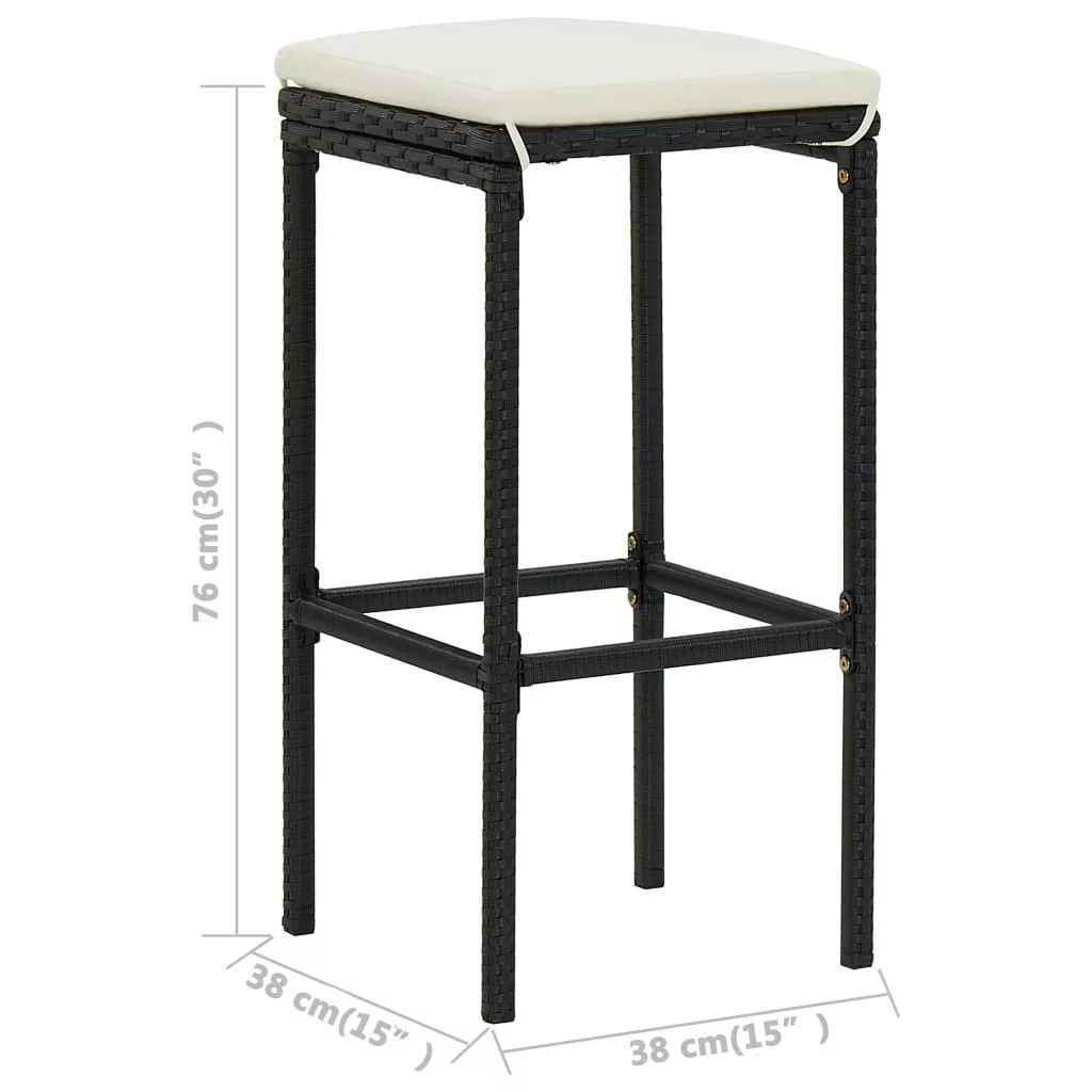 Ez a kerti bárszett elegáns dizájnnal rendelkezik, és kertje, udvara vagy terasza fénypontja lesz. Az időjárás- és vízálló polyrattanból készült bárszett könnyen tisztítható, kopásálló, és mindennapi használatra alkalmas. A porszórt acélváz kiemelkedően erőssé és tartóssá teszi az asztalt és a székeket. Könnyű szerkezetének köszönhetően az összes bútordarab könnyen mozgatható. A vastag, eltávolítható párnák rendkívül kényelmesek. A cipzárral ellátott huzatok könnyen levehetőek és moshatóak. Figyelem: kültéri bútora élettartamának meghosszabbítása érdekében javasoljuk, hogy tisztítsa rendszeresen, és ne hagyja feleslegesen a szabadban, védelem nélkül.Tisztítás: használjon enyhe szappanoldatotTárolás: Ha lehetséges, tárolja zárt, hűvös, száraz helyen. Ha a terméket a szabadban tárolja, védje vízálló burkolattal. Eső vagy havazás után törölje le és szárítsa fel a felesleges vizet vagy havat a sík felületekről. Hagyjon elegendő légkeringést a nedvességből eredő károk elkerülése érdekében. Maksimális 110 kg ülésenként. Legyen tudatában a nyílt tűz és más erős hőforrások kockázatának a termék környezetében.