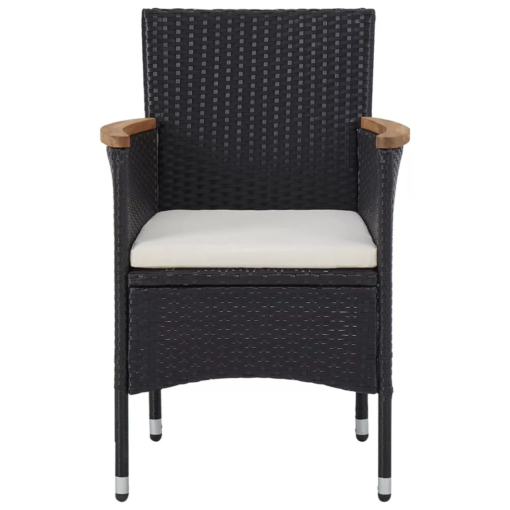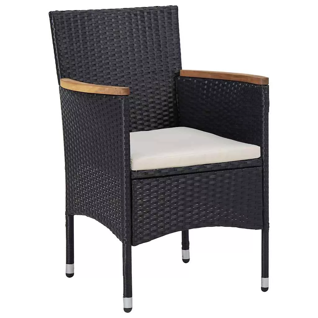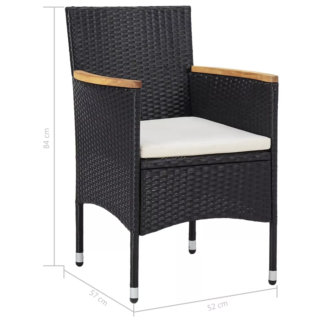 Ruházza fel otthonát impozáns, odaillő esztétikus kiegészítővel, és fogyassza el vacsoráját kényelmesen a kertben ötrészes étkezőszettünknél! Az egy étkezőasztalból, két karfás székből és két zsámolyból álló étkezőszett kiválóan alkalmas kerti összejövetelekhez! Az étkezőszett megerősített acél váza, melyet elegáns, időjárásálló, kézzel szőtt polietilén rattan takar, erős tartást biztosít, és egész évben használható. Az asztallap és a kartámaszok minőségi tömör akácfából, egy trópusi keményfából készültek, amely időjárásálló, és évekig tartó használatot biztosít. A kivitelezésnek és a gyönyörű faerezetnek köszönhetőn minden bútordarab egyedi, és kissé különbözik a többitől. Az extra kényelem érdekében mindegyik szék vastagon párnázott, levehető párnával rendelkezik. A levehető párnahuzatok cipzárasak. Emellett a könnyű rattan szerkezet megkönnyíti a darabok mozgatását, újrarendezését és szállítását. A küldemény 1 db étkezőasztalból, 2 db karfás székből, 2 db zsámolyból és 2 db ülőpárnából áll. Fontos megjegyzés: A bútorok színe darabonként változhat, így minden étkezőszettünk egyedi. Az élettartam növelése érdekében javasoljuk, hogy eső, hó, fagy vagy egyéb zord időjárási körülmény esetén takarja le a szettet.