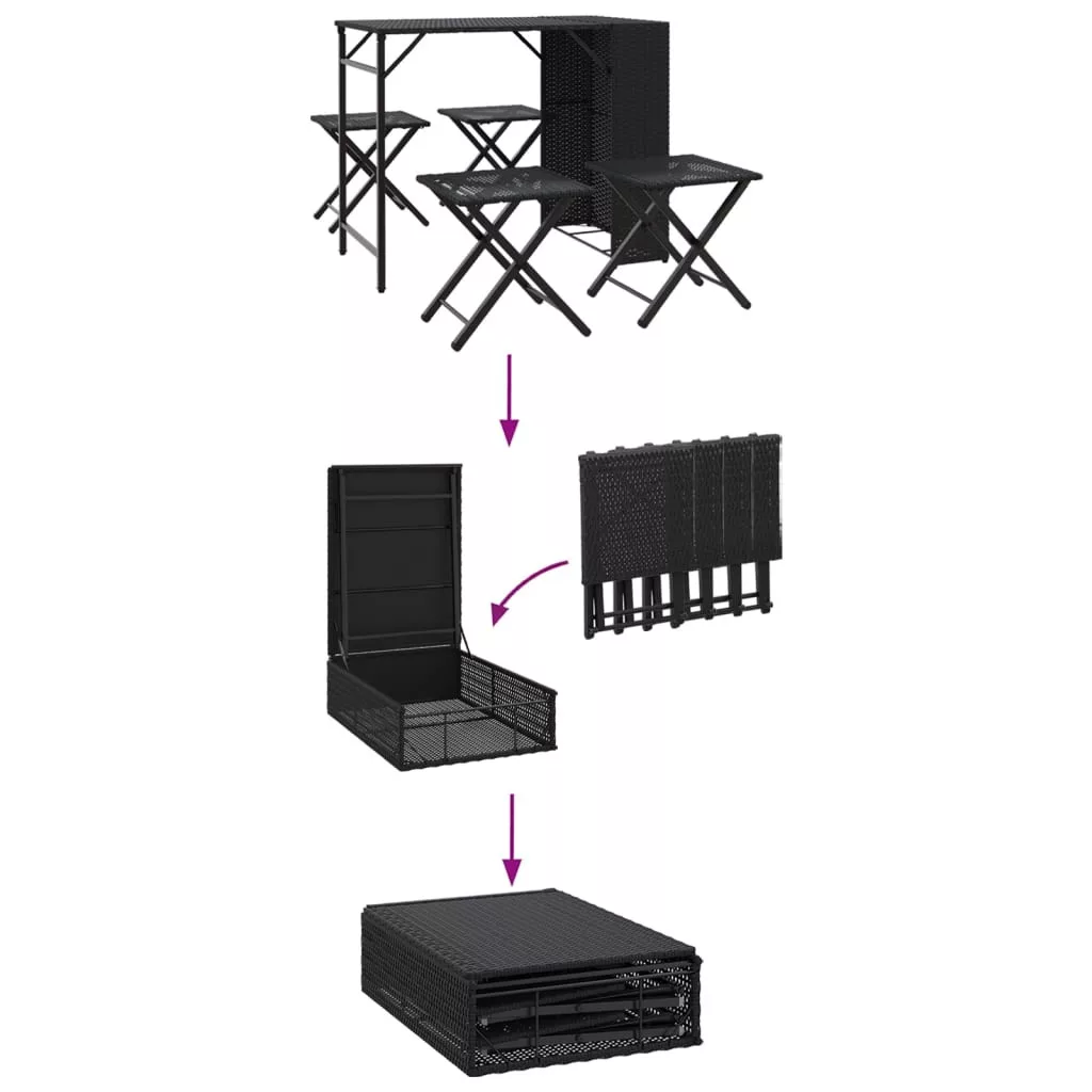 Ez a kerti étkezőgarnitúra nagyszerű választás, hogy magával vigye a kempingezés során, vagy csak pihenéshez a kertben, az udvaron, vagy a teraszon. Tartós anyag: A PE rattan, más néven polyrattan, egy erős, kevés karbantartást igénylő szintetikus anyag, amely úgy néz ki, mint a természetes rattan. Könnyű, könnyen tisztítható, tartóssága és időjárásálló tulajdonságai miatt gyakran használják kültéri bútorok készítéséhez.Kompakt tárolás: Az asztal és a székek összecsukhatók a könnyű tárolás és szállítás érdekében. Ezenkívül a székek az asztalban is tárolhatók, így tovább maximalizálható a helyhatékonyság.Robusztus és stabil váz: A porszórt acél váz biztosítja, hogy a kerti bútor erős és stabil legyen a mindennapi kültéri használathoz. Jó tudni:A kültéri bútor szépségének megőrzése érdekében javasoljuk, hogy vízálló huzattal fedje be.