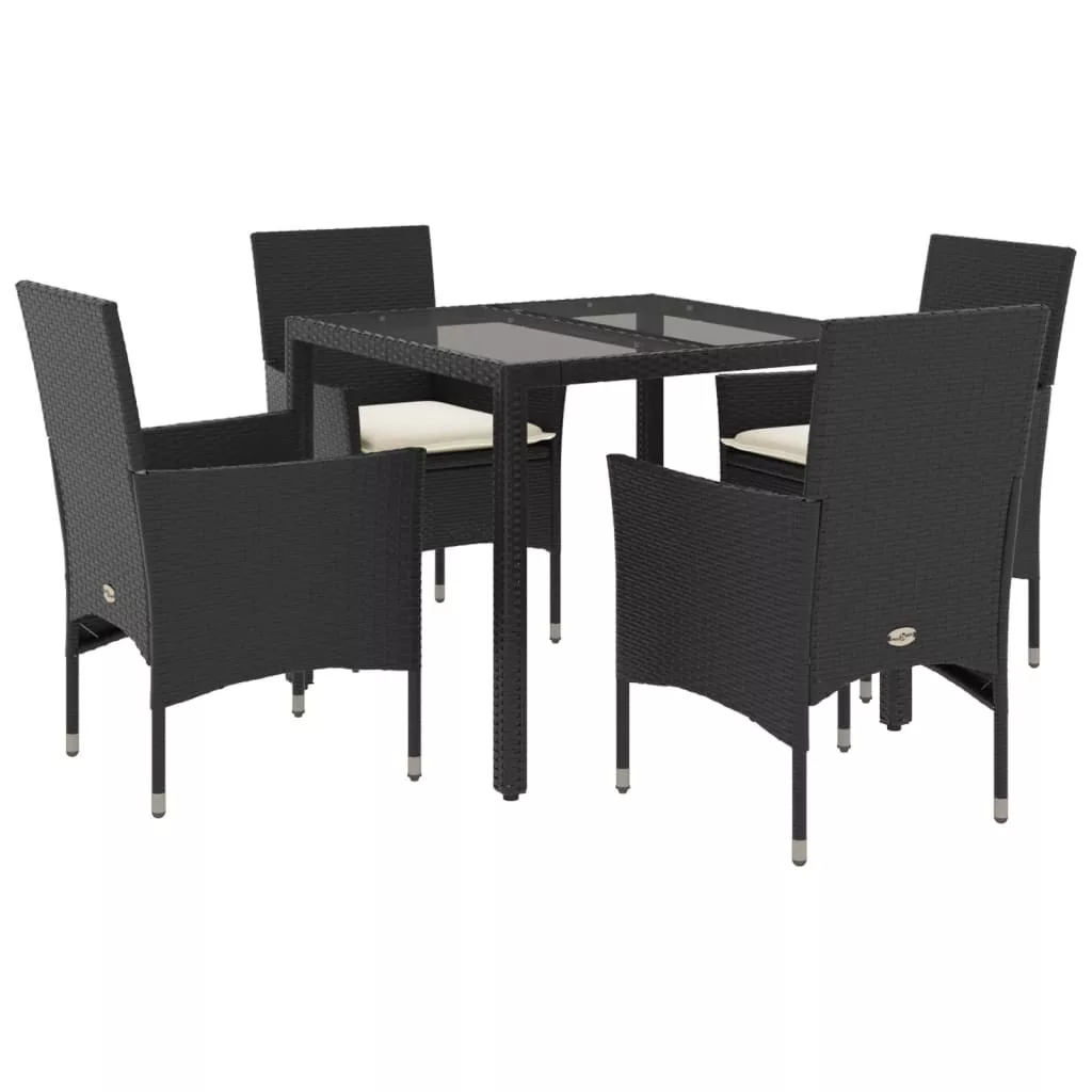 Ez a kerti étkezőgarnitúra nagyszerű választás a szabadban való étkezéshez, vagy csak pihenéshez a kertben, az udvaron vagy a teraszon. Tartós anyag: A PE rattan, más néven polyrattan, egy erős, kevés karbantartást igénylő szintetikus anyag, amely úgy néz ki, mint a természetes rattan. Könnyű, könnyen tisztítható, tartóssága és időjárásálló tulajdonságai miatt gyakran használják kültéri bútorok készítéséhez.Kényelmes ülőélmény: Ez a vastagon bélelt párnákkal kiegészített kültéri bútorkészlet kényelmes ülőélményt kínál.Levehető és mosható huzat: Ezek az ülőpárnák levehető huzattal rendelkeznek az egyszerű mosás és karbantartás érdekében.Üveg asztallap: A kültéri asztallap erős és tartós edzett üvegből készült, így nedves ruhával könnyen tisztítható, és egy csipetnyi eleganciát kölcsönöz a kültéri környezetnek. Jó tudni:A kültéri bútor szépségének megőrzése érdekében javasoljuk, hogy vízálló huzattal fedje be. Maksimális 110 kg ülésenként. Legyen tudatában a nyílt tűz és más erős hőforrások kockázatának a termék környezetében.