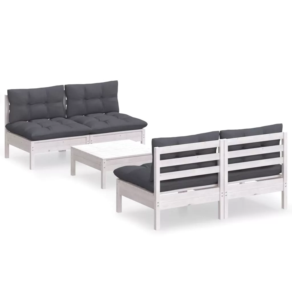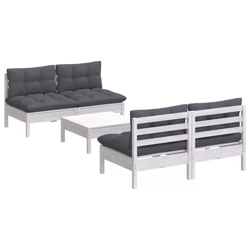 5 részes fenyőfa kerti ülőgarnitúra antracitszürke párnákkal