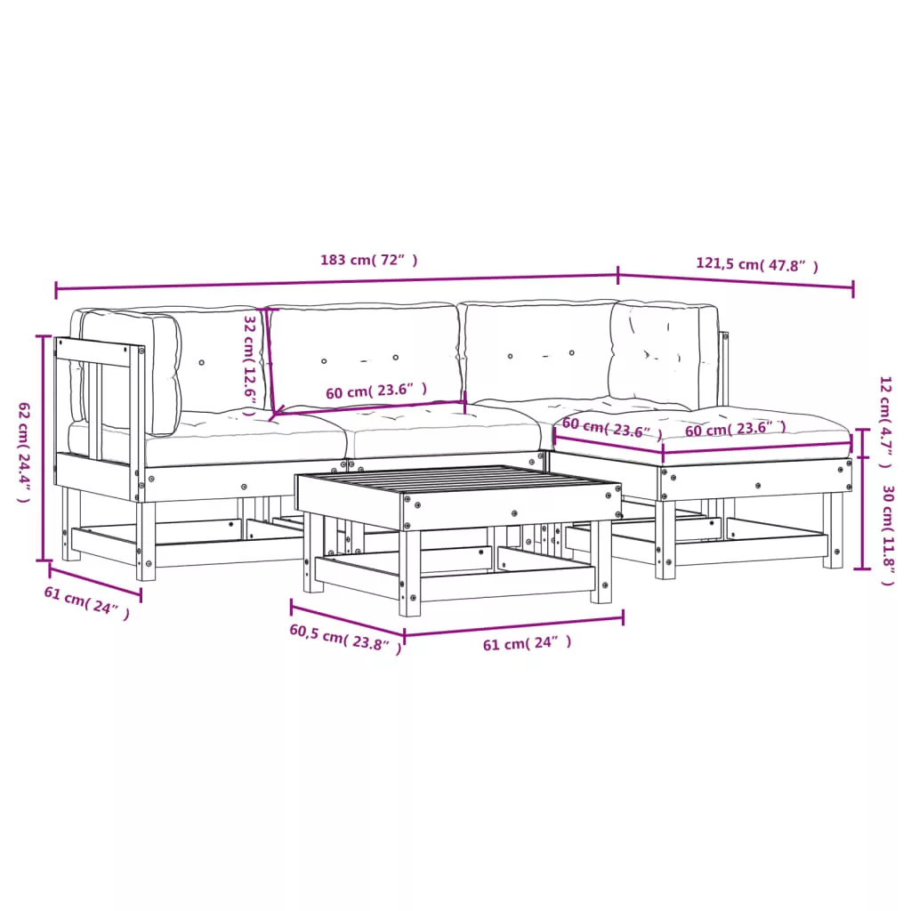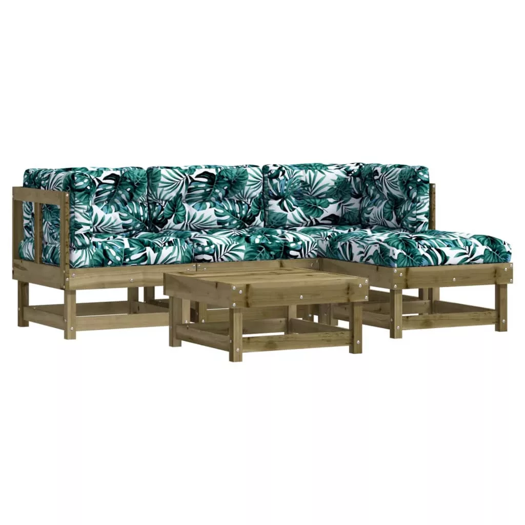 5 részes impregnált fenyőfa kerti ülőgarnitúra párnával