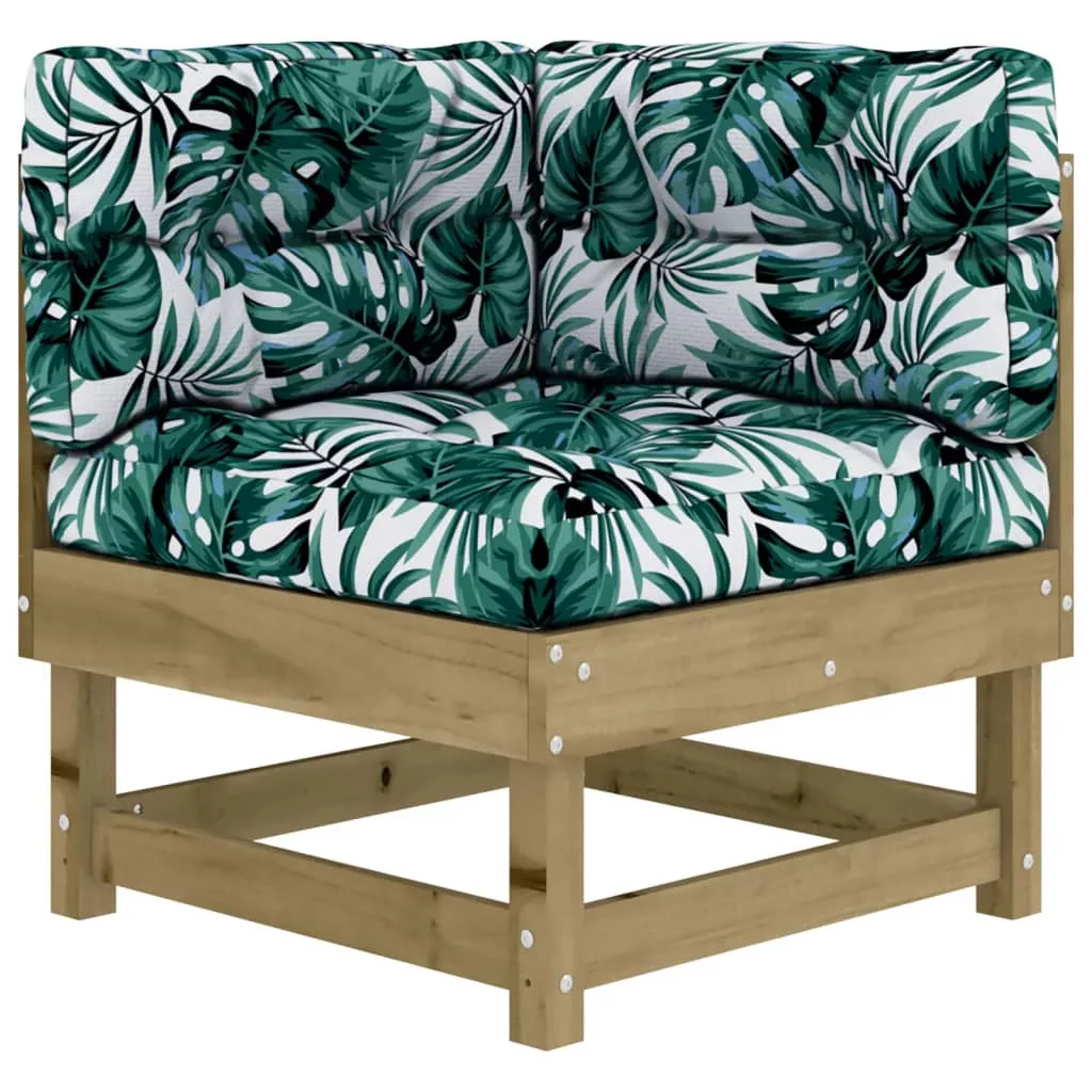 Ez a rácsos kialakítással és puha párnával rendelkező fa kerti társalgószett kertje, udvara vagy terasza remek kiegészítője lesz, ahol családtagjai vagy barátai körében társaloghat. Impregnált fenyőfa: A tömör fenyőfa egy gyönyörű és természetes anyag. A fenyőfa egyenes erezetű, a csomók pedig jellegzetes, rusztikus megjelenést biztosítanak az anyagnak. Az impregnálás egy tartósítási eljárás, amely egy zárt, túlnyomásos berendezés használatával történik. A nyomáskezelés növeli a korhadással és a vízzel szembeni ellenállást.Kényelmes ülésélmény: A háttámla és a kartámasz extra kényelmet biztosít a kerti bútorgarnitúra számára. Ráadásul a vastagon bélelt párnák is kényelmet nyújtanak ülés közben.Moduláris kialakítás: A kanapészett rugalmasan és könnyen mozgatható. Kombinálhatja más moduláris elemekkel, hogy létrehozza saját személyes kerti pihenőgarnitúráját! Jó tudni:A kültéri bútor szépségének megőrzése érdekében javasoljuk, hogy vízálló huzattal fedje be. Maximum 110 kg ülésenként.