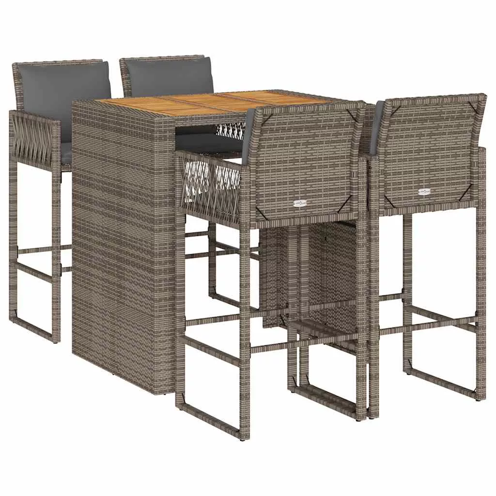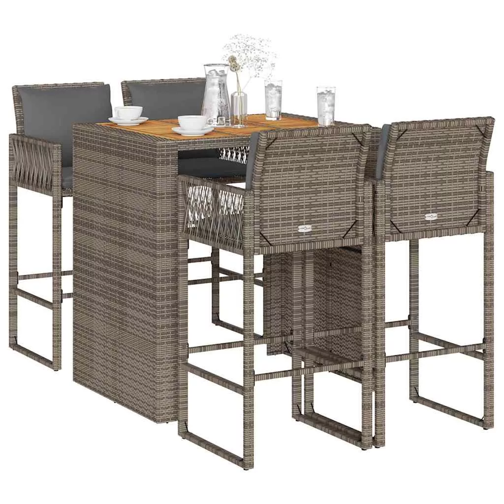 Ez a divatos kerti bárszett, amely egyszerre elegáns és praktikus, garantáltan kertje, udvara vagy bármilyen egyéb környezet központi eleme lesz. Időjárásálló anyag: A PE-rattan, más néven polyrattan, időjárásálló és könnyen tisztítható. Sokáig megőrzi szépségét a szabadban. Kiváló minőséget, kényelmet és esztétikus megjelenést garantál.Kényelmes ülés: A bárszéket háttámasszal és beépített lábtartóval tervezték, hogy kényelmes ülésélményt nyújtson. A vastagon bélelt ülőpárna maximális kényelmet biztosít ülés közben.Erős és stabil váz: A porszórt acélváz masszívvá és stabillá teszi a bárgarnitúrát a mindennapos kültéri használathoz.Széleskörű felhasználás: A különleges kialakítású bárasztal és szék kellemes összképet teremt, és bármilyen környezetbe illik. Jó tudni:A szerelés megkönnyítése érdekében minden termék kézikönyvvel együtt kerül kiszállításra.Megjegyzés:A kültéri bútor szépségének megőrzése érdekében javasoljuk, hogy vízálló huzattal fedje be. Maksimális 110 kg ülésenként. Legyen tudatában a nyílt tűz és más erős hőforrások kockázatának a termék környezetében.