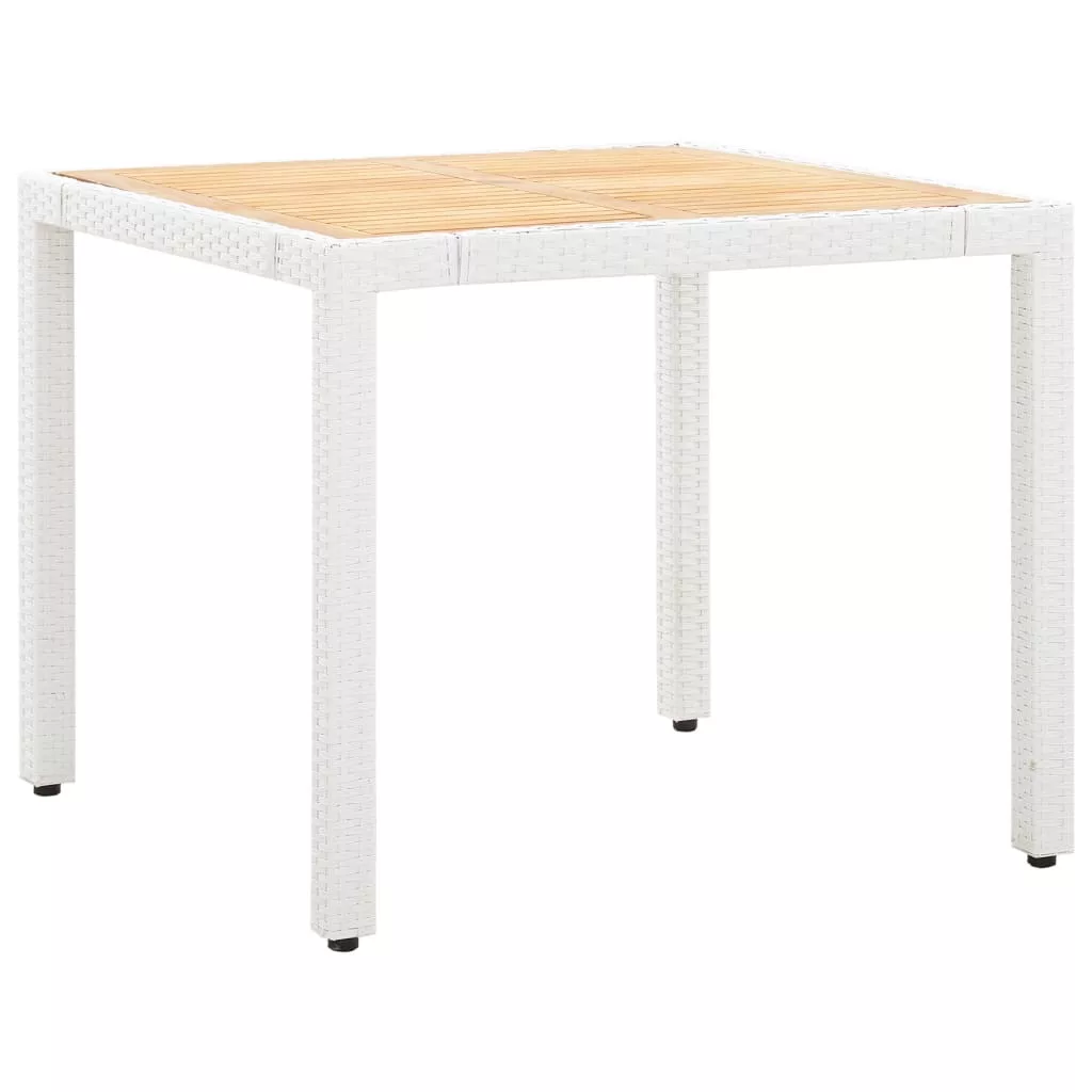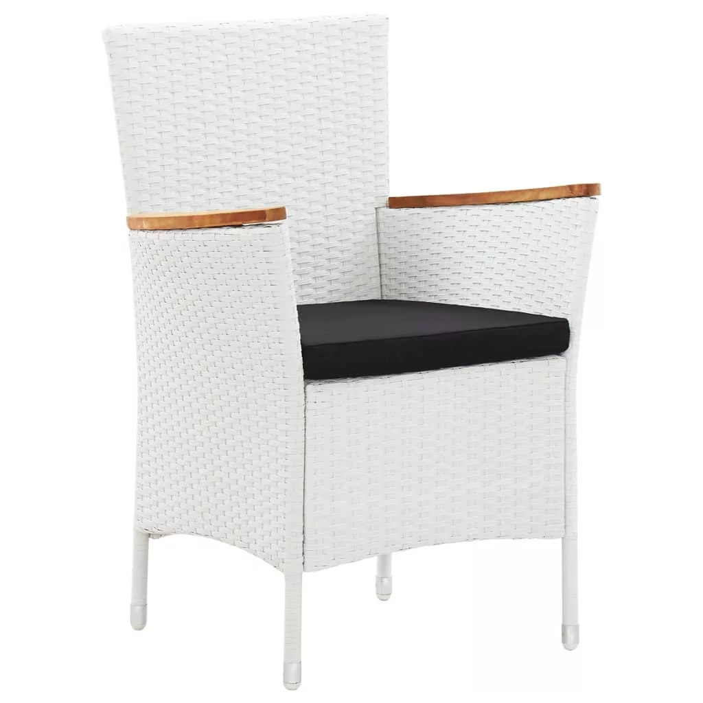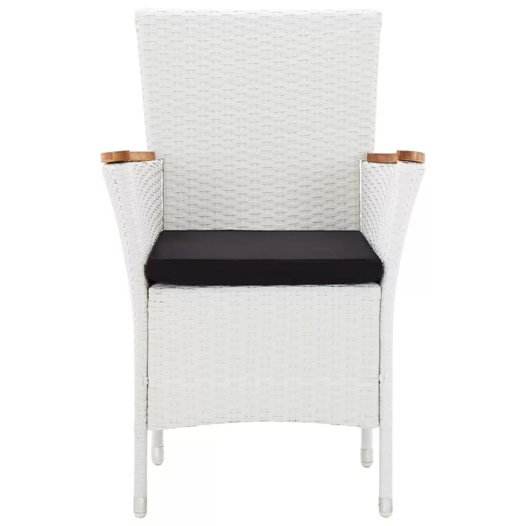 Ez a rattan étkezőgarnitúra elegáns, modern megjelenésével tökéletes választás kertben való pihenéshez vagy szabadtéri étkezésekhez. Az időjárás- és vízálló PE rattannak köszönhetően az étkezőgarnitúra könnyen tisztítható, kopásálló és mindennapi használatra alkalmas. Prémium minőségű anyag: A porszórt acél váz erőssé és masszívvá teszi az asztalt és a székeket. Az asztallap és a karfa tömör akácfából, egy trópusi keményfából készült, amely időjárásálló. A könnyű szerkezetnek köszönhetően minden elem könnyen mozgatható. A vastag, puha, habszivacsos ülőpárnák rendkívül kényelmesek és vízlepergető poliészterből készültek. A cipzáros párnahuzatok könnyen levehetők és moshatók. A bútorgarnitúra összeszerelése egyszerű. Figyelem: Eső, hó vagy fagy esetén azt tanácsoljuk, hogy takarja le a garnitúrát.
