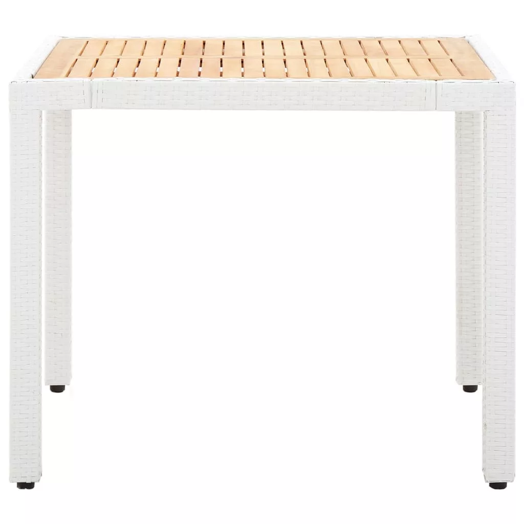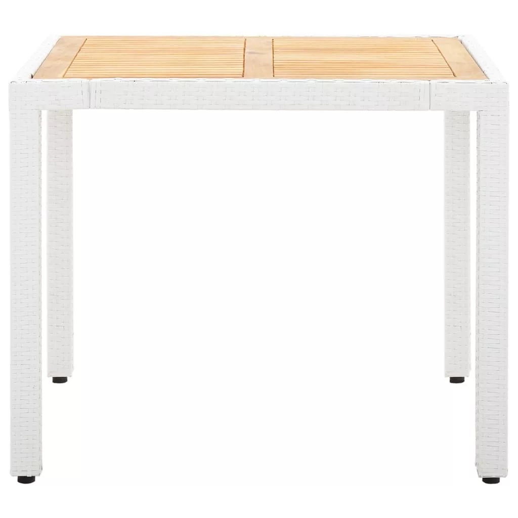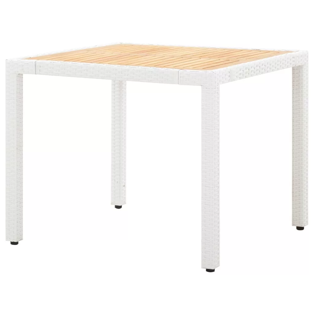 Ez a rattan étkezőgarnitúra elegáns, modern megjelenésével tökéletes választás kertben való pihenéshez vagy szabadtéri étkezésekhez. Az időjárás- és vízálló PE rattannak köszönhetően az étkezőgarnitúra könnyen tisztítható, kopásálló és mindennapi használatra alkalmas. Prémium minőségű anyag: A porszórt acél váz erőssé és masszívvá teszi az asztalt és a székeket. Az asztallap és a karfa tömör akácfából, egy trópusi keményfából készült, amely időjárásálló. A könnyű szerkezetnek köszönhetően minden elem könnyen mozgatható. A vastag, puha, habszivacsos ülőpárnák rendkívül kényelmesek és vízlepergető poliészterből készültek. A cipzáros párnahuzatok könnyen levehetők és moshatók. A bútorgarnitúra összeszerelése egyszerű. Figyelem: Eső, hó vagy fagy esetén azt tanácsoljuk, hogy takarja le a garnitúrát.