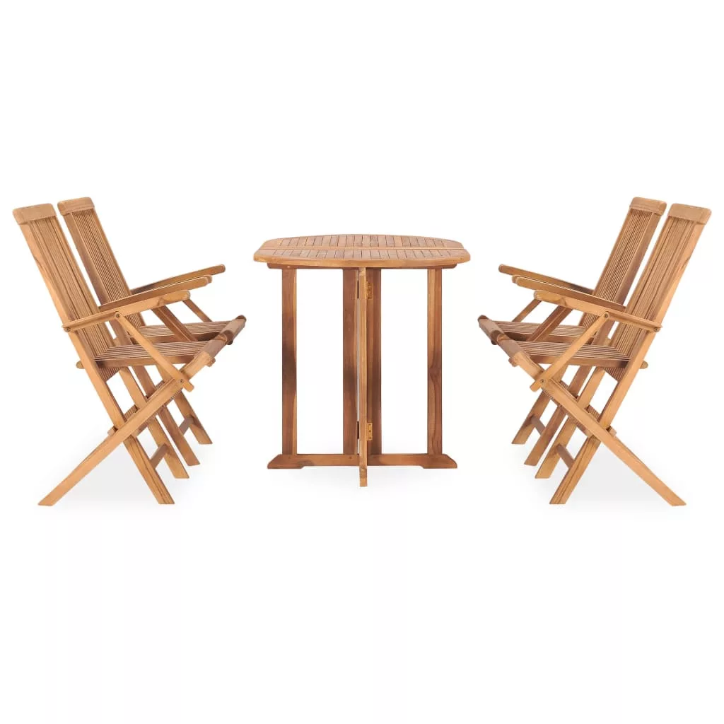 5 részes kültéri összecsukható tömör tíkfa étkezőgarnitúra