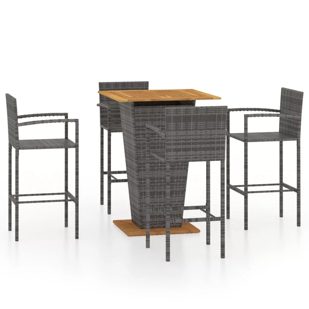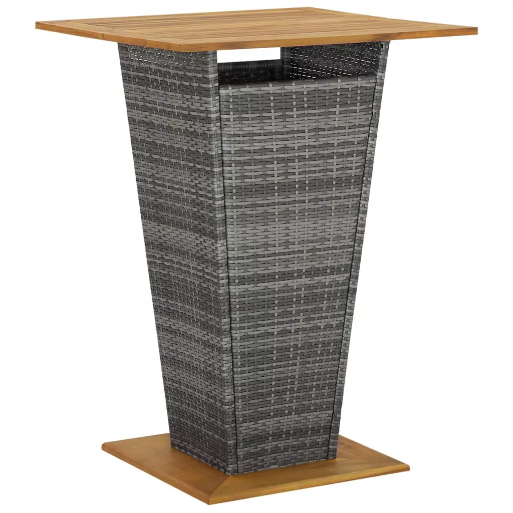 Ez a kerti bárszett elegáns dizájnnal rendelkezik, és kertje, udvara vagy terasza fénypontja lesz. Az időjárásálló PE-rattan borítású porszórt acélvázzal ellátott bárszett évekig tartó kültéri felhasználást biztosít. Emellett a tömör akácfa asztallap és talp további növeli a szilárdságát és stabilitását. A rácsos fa asztallapra italokat, ételeket stb. helyezhet. Ráadásul a beépített lábtartó tovább fokozza a kényelmet ülés közben. A könnyű súlyú PE-rattan konstrukciónak köszönhetően a kerti bárszett könnyen mozgatható. Figyelem: kültéri bútora élettartamának meghosszabbítása érdekében javasoljuk, hogy tisztítsa rendszeresen, és ne hagyja feleslegesen a szabadban, védelem nélkül.Tisztítás: használjon enyhe szappanoldatotTárolás: Ha lehetséges, tárolja zárt, hűvös, száraz helyen. Ha a terméket a szabadban tárolja, védje vízálló burkolattal. Eső vagy havazás után törölje le és szárítsa fel a felesleges vizet vagy havat a sík felületekről. Hagyjon elegendő légkeringést a nedvességből eredő károk elkerülése érdekében. Maximum 110 kg ülésenként.