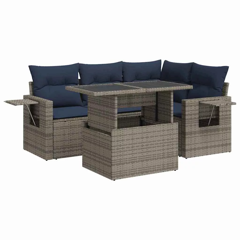 Ez a kerti ülőgarnitúra tökéletes kiegészítője lesz kertjének, teraszának vagy udvarának, kényelmes és hívogató teret biztosítva a családdal és a barátokkal való beszélgetéshez, vagy egyszerűen csak pihenéshez a szabadban.Tartós anyag: A PE rattan, más néven polyrattan, egy erős, kevés karbantartást igénylő szintetikus anyag, amely úgy néz ki, mint a természetes rattan. Könnyű, könnyen tisztítható, tartóssága és időjárásálló tulajdonságai miatt gyakran használják kültéri bútorok készítéséhez.Tárolási funkció vízálló zsákkal: Minden kerti ülés tárolóhellyel rendelkezik az ülés alatt, amely egy vízálló zsákkal van kiegészítve a párnák, játékok és egyéb tárgyak tárolására. A belső zsák felső huzattal rendelkeznek, és a nagyobb stabilitás érdekében tépőzárral biztonságosan az ülésekhez rögzíthetők.Kényelmes kisasztal: Ez a kerti bútor összecsukható kisasztallal rendelkezik, a gázrugóval, amely kényelmes helyet biztosít, hogy a legfontosabb dolgokat könnyen elérhető helyen tartsa.Levehető és mosható huzat: Ezek az ülőpárnák levehető huzattal rendelkeznek az egyszerű mosás és karbantartás érdekében.Moduláris kialakítás: Ez a kerti bútorkészlet moduláris felépítésű, így teljesen rugalmas és könnyen mozgatható, így személyre szabott kerti bútor-elrendezést alakíthat ki.Jó tudni:A kültéri bútor szépségének megőrzése érdekében javasoljuk, hogy vízálló huzattal fedje be.