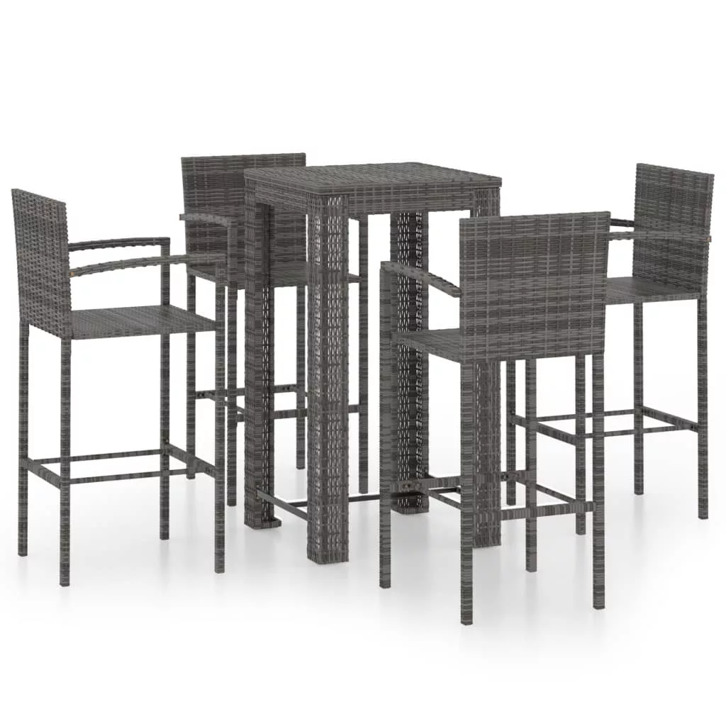 5 részes szürke polyrattan kültéri bárszett kartámasszal