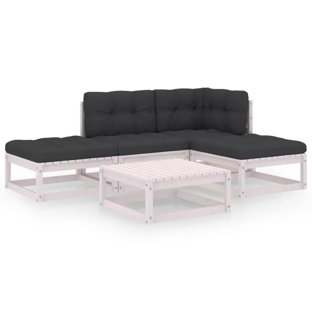 5 részes tömör fenyőfa kerti ülőgarnitúra párnákkal