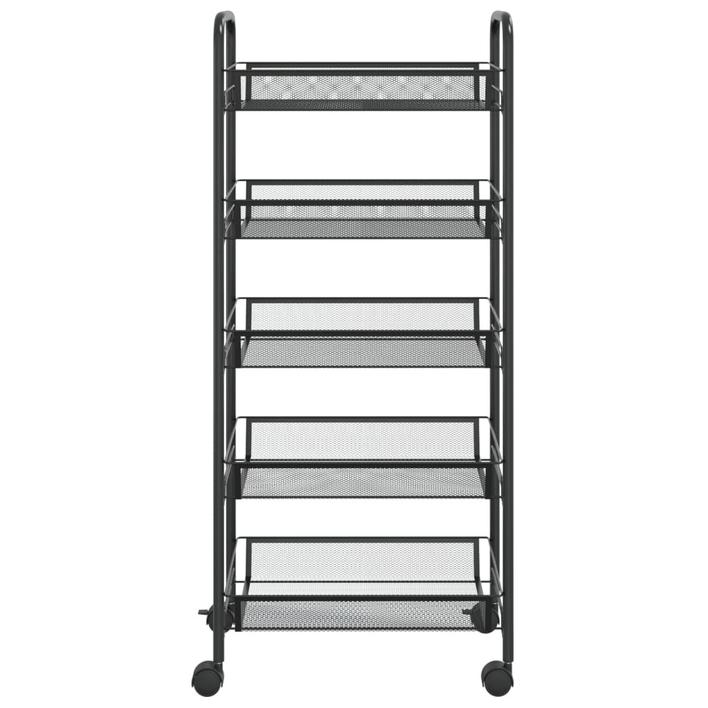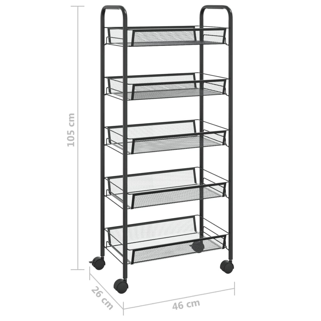 5 szintes fekete vas konyhai kerekes kocsi 46 x 26 x 105 cm