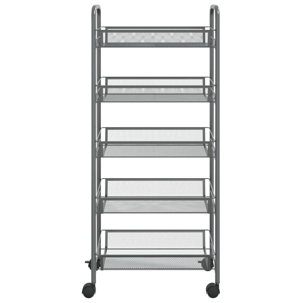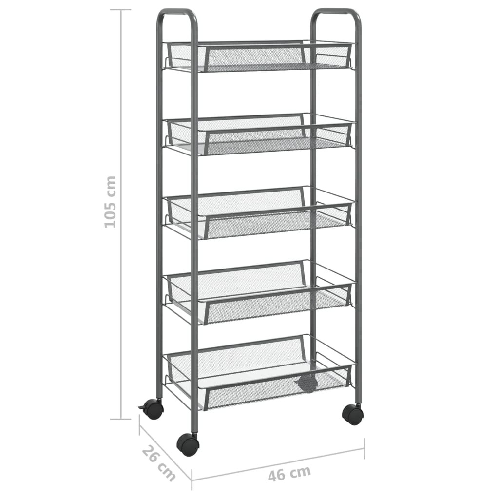 5 szintes szürke vas konyhai kerekes kocsi 46 x 26 x 105 cm