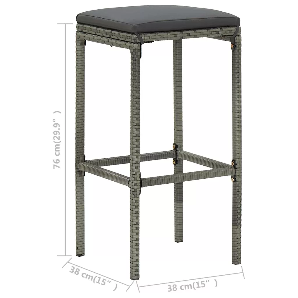 6 db szürke polyrattan bárszék párnával