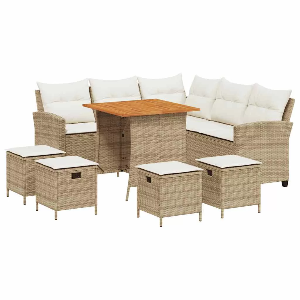 6 részes bézs polyrattan kerti ülőgarnitúra párnákkal L-alakú