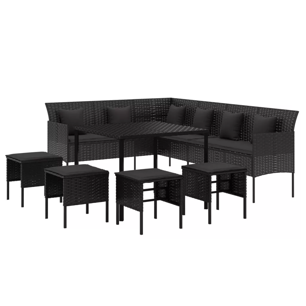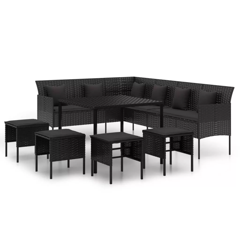Ez a divatos kerti étkezőgarnitúra elegáns és modern megjelenésével nagyszerű választás a kertben való pihenéshez. Tartós anyag: A PE-rattan, más néven polyrattan, időjárásálló és könnyen tisztítható. Sokáig megőrzi szépségét a szabadban. Más anyagoknál gazdaságosabb, valamint kiváló minőséget, kényelmet és esztétikus megjelenést garantál.Stabil váz: Az acél rendkívül kemény és erős anyag. Erőt és stabilitást biztosít az étkezőgarnitúrának. Az acél porszórata védőréteget képez a kopással szemben.Kényelmes ülés: A vastagon bélelt hát- és ülőpárnáknak köszönhetően a kültéri étkezőgarnitúra rendkívül kényelmes. Jó tudni:A szerelés megkönnyítése érdekében minden termék kézikönyvvel együtt kerül kiszállításra. Megjegyzés:A kültéri bútor szépségének megőrzése érdekében javasoljuk, hogy vízálló huzattal fedje be.