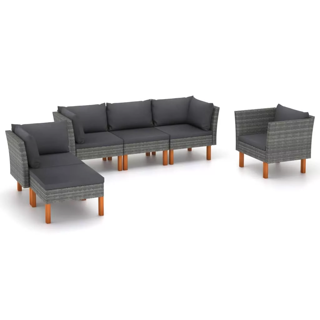 Ez a kerti bútorgarnitúra remek választás pihenéshez, a jó idő élvezetéhez, szundításhoz, vagy a családtagjaival és barátaival való beszélgetéshez. A polietilén rattan borítású porszórt acélvázzal ellátott kerti kanapészett masszív és könnyen tisztítható. A tömör eukaliptuszfa lábak tovább növelik szilárdságát. A párnák extra kényelmet biztosítanak a pihenéshez. A cipzáras párnahuzatok levehetőek és moshatóak. A könnyű polietilén rattan kialakításnak köszönhetően könnyen mozgatható. Figyelem: kültéri bútora élettartamának meghosszabbítása érdekében javasoljuk, hogy tisztítsa rendszeresen, és ne hagyja feleslegesen a szabadban, védelem nélkül.Tisztítás: használjon enyhe szappanoldatot.Tárolás: Ha lehetséges, tárolja zárt, hűvös, száraz helyen. Ha a terméket a szabadban tárolja, védje vízálló burkolattal. Eső vagy havazás után törölje le és szárítsa fel a felesleges vizet vagy havat a sík felületekről. Hagyjon elegendő légkeringést a nedvességből eredő károk elkerülése érdekében.