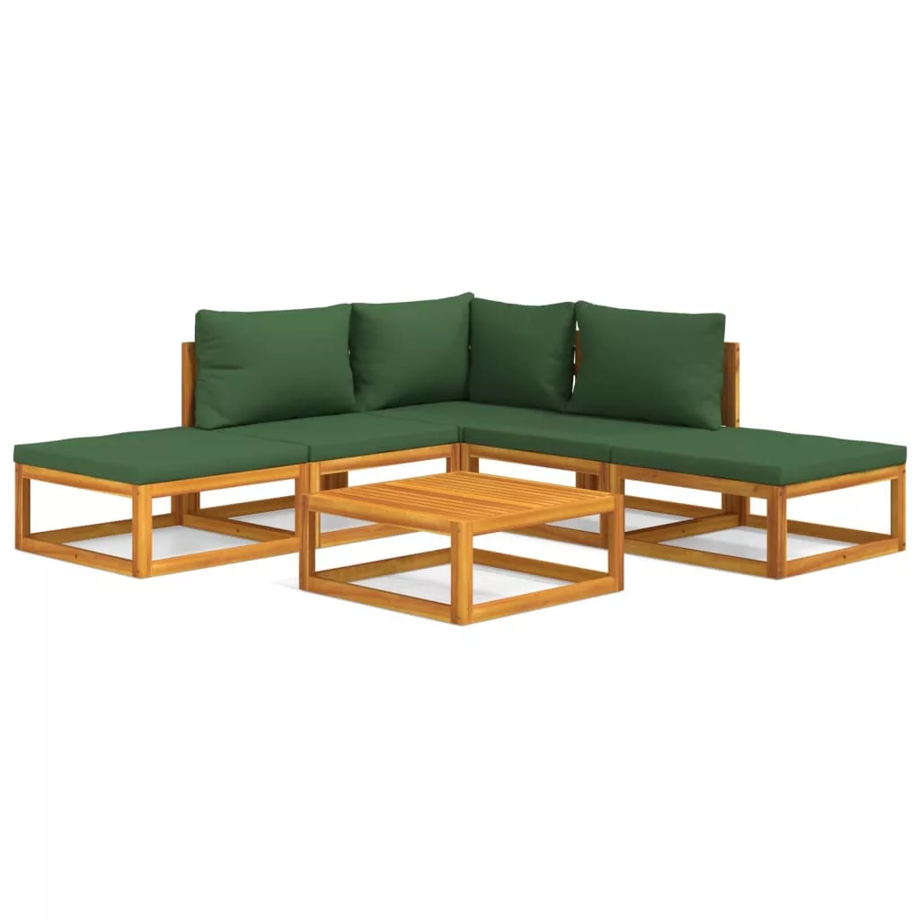 6 részes tömör fa kerti ülőgarnitúra zöld párnákkal