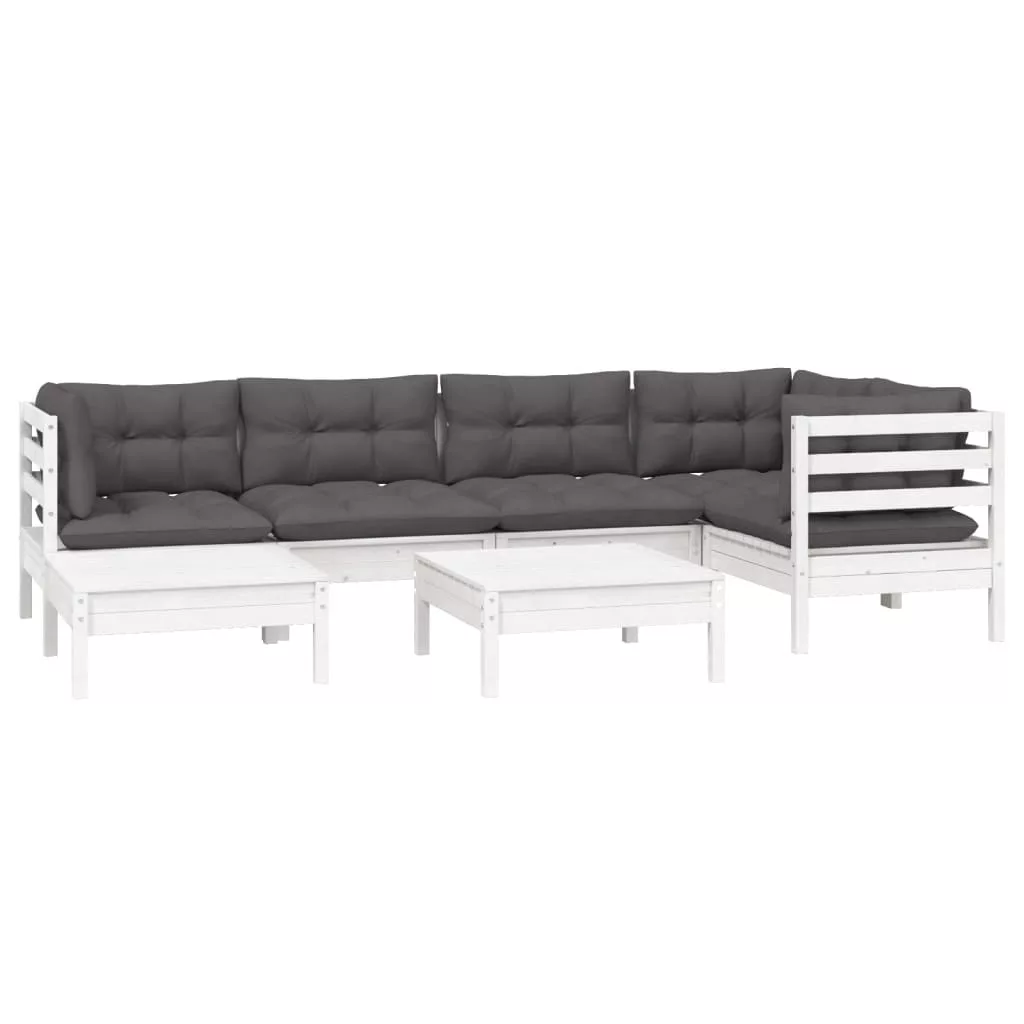 7 darabos fehér tömör fenyőfa kerti ülőgarnitúra párnákkal