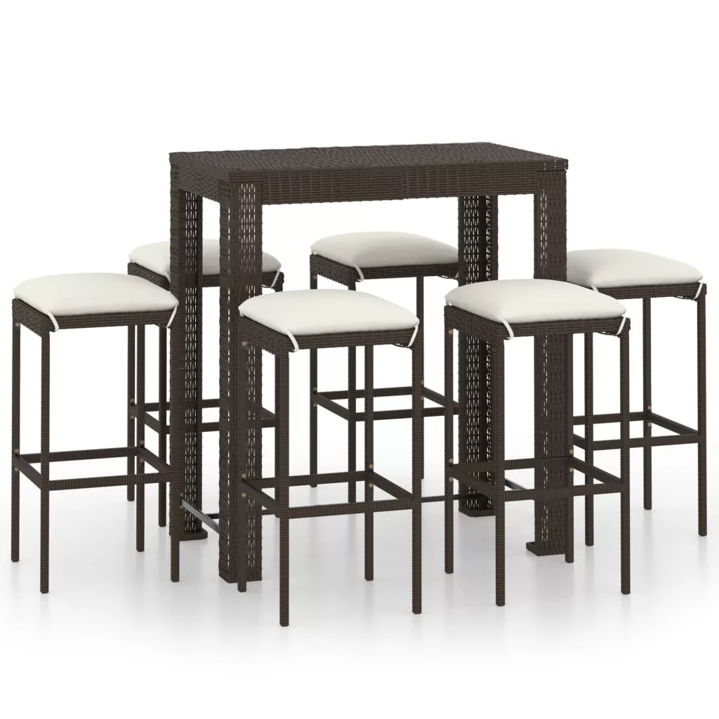 Ez a stílusos kerti bárgarnitúra otthonos és kényelmes pihenést biztosít családtagjai és barátai körében. A bárasztal porszórt acélvázat kapott, így stabil és robusztus. A négyzet alakú asztallap ideális italok, ételek vagy dekoratív holmik tárolásához. A bárszékek szilárd acélvázas szerkezettel rendelkeznek és az időjárás viszontagságainak ellenálló PE rattanból készültek, amelyek kellő stabilitást biztosítanak és így könnyen mozgathatóak. A párna és a lábtartó tovább növelik a bárszékek kényelmét. A rejtett cipzárral ellátott poliészter párnahuzat könnyen tisztítható. Maksimális 110 kg ülésenként. Legyen tudatában a nyílt tűz és más erős hőforrások kockázatának a termék környezetében.
