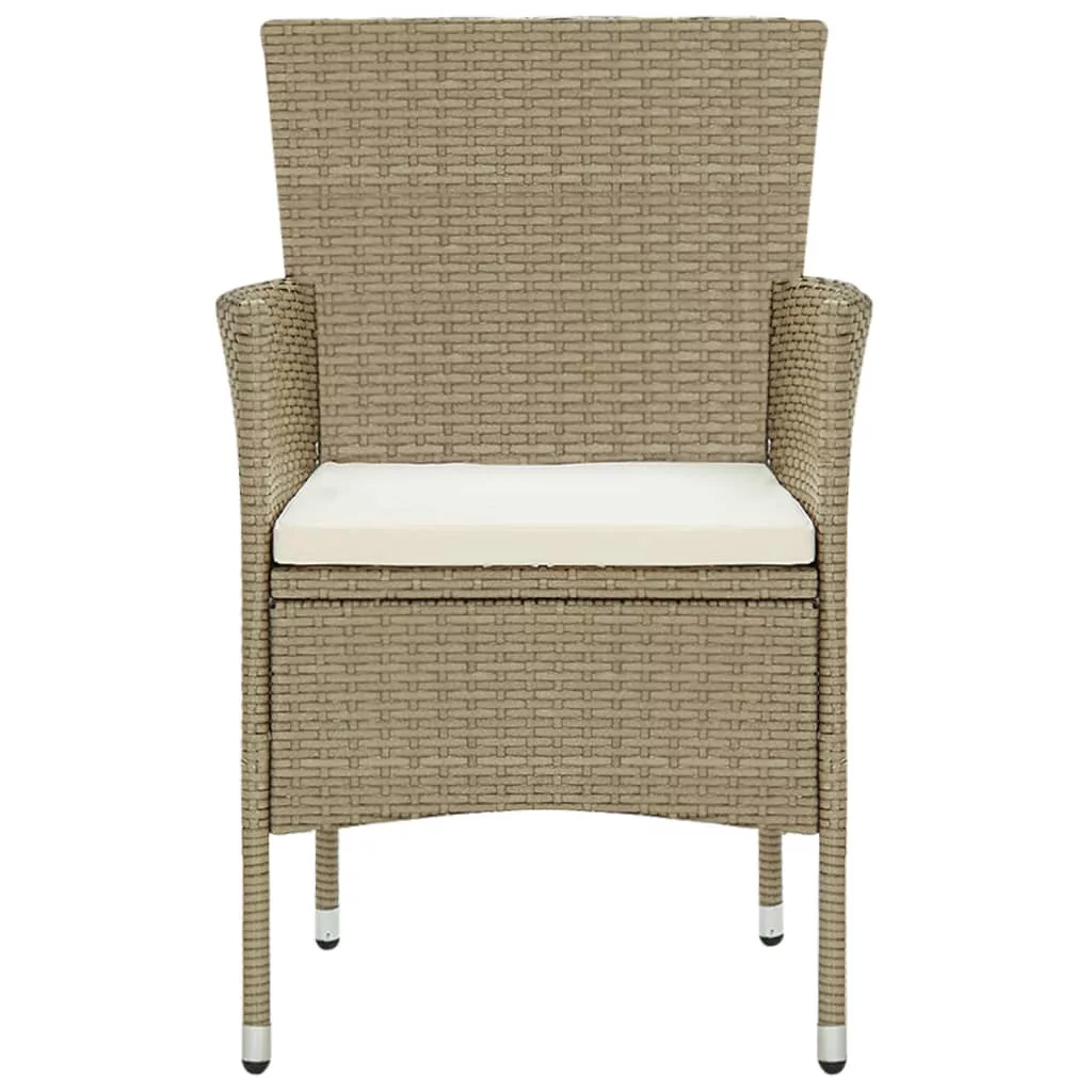 Csempésszen otthonába egy impozáns, odaillő esztétikai megoldást, és fogyassza el vacsoráját kényelmesen a kertben ezzel az étkezőszettel! Ez az étkezőasztal tömör akácfából készült, így masszív és strapabíró. Az olajjal kezelt felületnek köszönhetően kültéri használatra tökéletes. Az acélváz időjárásálló PE rattannal lett beborítva, ezért az étkezőszékek robusztusak és könnyen tisztíthatók. A vastagon kitömött párnák tovább fokozzák a kényelmet társalgás közben. Megjegyzés: kültéri bútora élettartamának meghosszabbítása érdekében javasoljuk, hogy tisztítsa rendszeresen, és ne hagyja feleslegesen a szabadban, védelem nélkül.Tisztítás: használjon enyhe szappanoldatot.Tárolás: Ha lehetséges, tárolja zárt, hűvös, száraz helyen. Ha a terméket a szabadban tárolja, védje vízálló burkolattal. Eső vagy havazás után törölje le és szárítsa fel a felesleges vizet vagy havat a sima felületekről. Hagyjon elegendő légkeringést a nedvességből eredő károk elkerülése érdekében. Maximum 110 kg ülésenként. Ügyeljen a nyílt tűz és más erős hőforrások veszélyére a termék közelében.