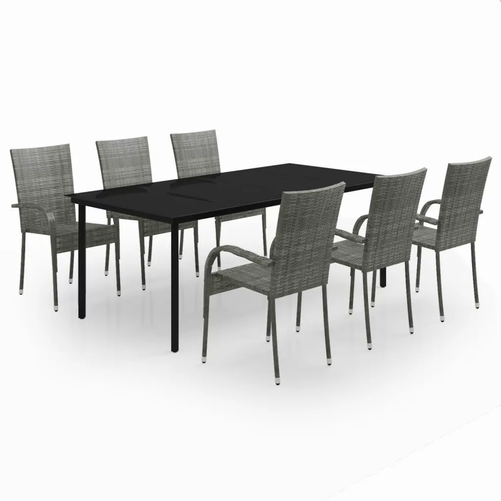 7 részes fekete és szürke kerti étkezőgarnitúra