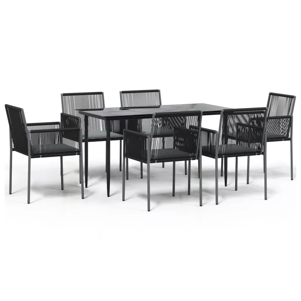 Pihenjen és élvezze a délutáni teázást vagy bármilyen étkezést családjával és barátaival ennél a kerti étkezőgarnitúránál ülve! Tartós anyag: A PE-rattan, más néven polyrattan, időjárásálló és könnyen tisztítható. Sokáig megőrzi szépségét a szabadban. Kiváló minőséget, kényelmet és esztétikus megjelenést garantál.Erős és stabil váz: Az acélváz masszívvá és stabillá teszi az étkezőgarnitúrát a mindennapos kültéri használathoz.Praktikus asztallap: Az étkezőasztal sima asztallapja edzett üvegből készült, amely nedves ruhával könnyen tisztítható. Ezenkívül kitűnően alkalmas ételek, italok és egyéb dísztárgyak elhelyezésére.Kényelmes ülés: Az étkezőszék háttámlával és karfákkal rendelkezik, így kényelmes ülést biztosít. Emellett a vastagon párnázott párna maximális kényelmet biztosít. Megjegyzés:A kültéri bútor szépségének megőrzése érdekében javasoljuk, hogy vízálló huzattal fedje be. Maximum 110 kg ülésenként. Ügyeljen a nyílt tűz és más erős hőforrások veszélyére a termék közelében.