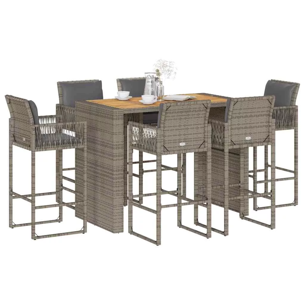 7 részes kerti bárkészlet párnákkal szürke polirattan akác