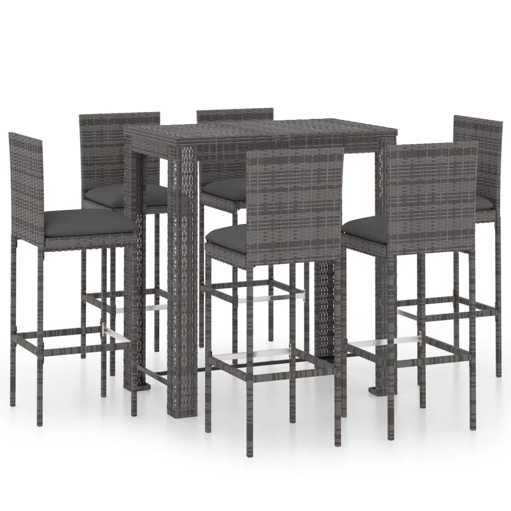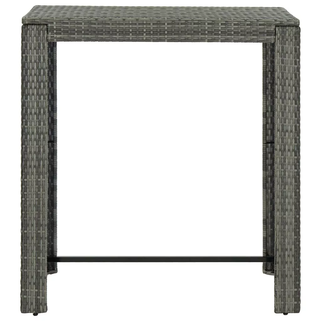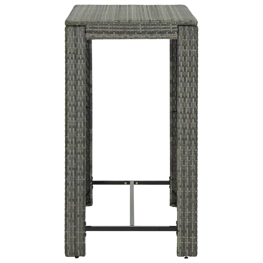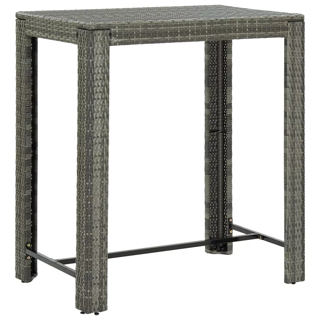 Ez a stílusos kerti bárgarnitúra otthonos és kényelmes pihenést biztosít családtagjai és barátai körében. A bárasztal porszórt acélvázat kapott, így stabil és robusztus. Az asztallap ideális italok, ételek vagy dekoratív holmik tárolásához. A bárszékek szilárd acélvázas szerkezettel rendelkeznek és az időjárás viszontagságainak ellenálló PE rattanból készültek, amelyek kellő stabilitást biztosítanak és így könnyen mozgathatóak. A párna és a lábtartó tovább növeli a bárszékek kényelmét. A rejtett cipzárral ellátott poliészter párnahuzat könnyen tisztítható. Maksimális 110 kg ülésenként. Legyen tudatában a nyílt tűz és más erős hőforrások kockázatának a termék környezetében.
