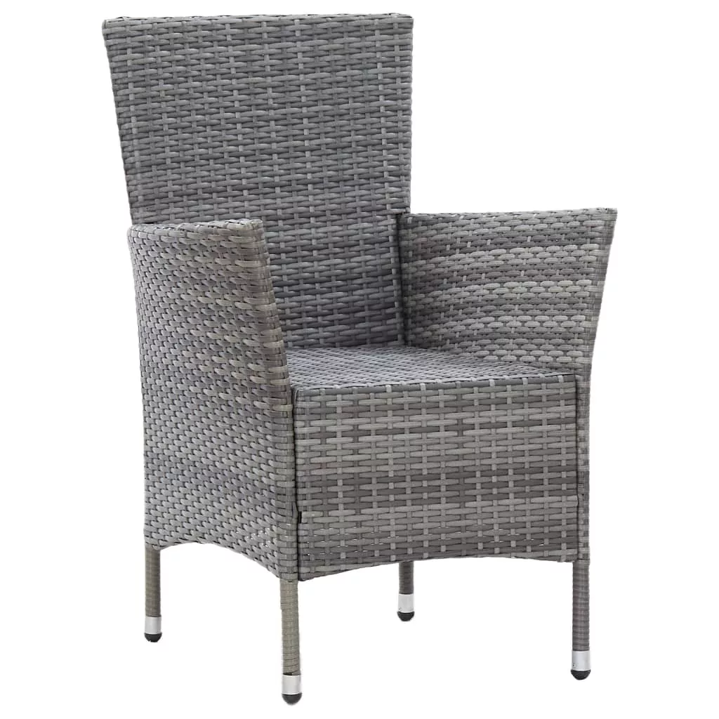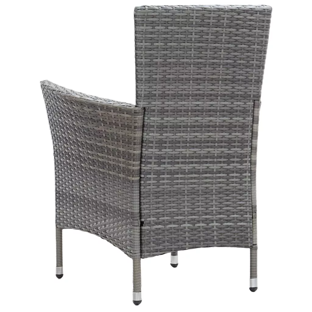 Kényelmes polyrattan étkezőgarnitúránk tökéletesen ötvözi a stílust és a praktikumot. Ez a garnitúra kertje vagy verandája fénypontja lesz. A vízálló PE rattannak köszönhetően az étkezőgarnitúra könnyen tisztítható, strapabíró, és kültéri használatra alkalmas. A porszórt felületű acélból készült váz a bútordaraboknak nemcsak a stabilitását, de tartósságát is garantálja. A szett része az elegáns székekhez illő, tömör akácfa lappal ellátott étkezőasztal. A habszivaccsal vastagon kitömött, levehető párnák maximális kényelmet nyújtanak. A kevés törődést igénylő poliészter párnahuzatok könnyen levehetők és kimoshatók. Ez a kerti garnitúra könnyen összeszerelhető. Figyelem: Ahhoz, hogy a garnitúra minél tovább szolgálhassa Önt, eső, hó vagy fagy esetén, kérjük takarja le.