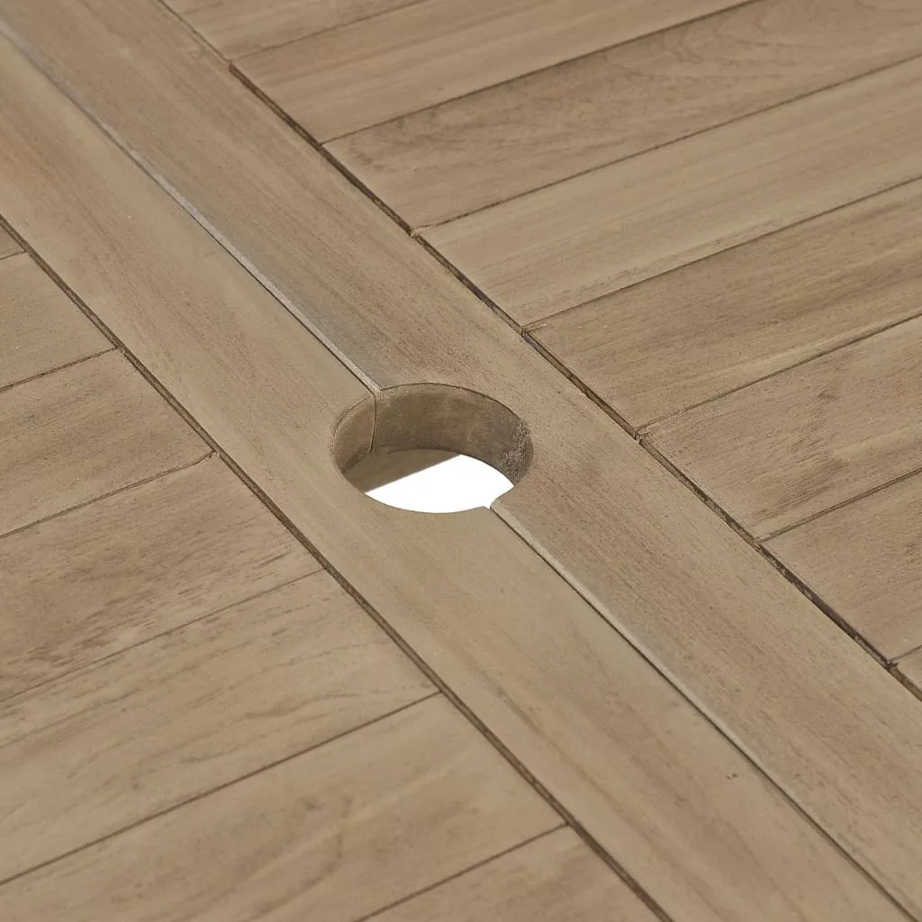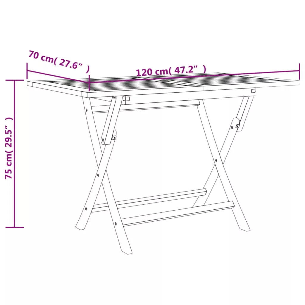 Pihenjen és élvezze a délutáni teázást vagy étkezzen családjával és barátaival ennél a klasszikus fából készült kerti étkezőgarnitúránál! Tömör tíkfa: Ez az étkezőgarnitúra tömör tíkfából készült. A tömör tíkfa egy gyönyörű, természetes anyag. A fa természetesen, illetve kemencében volt szárítva, majd finomra lett csiszolva az elegáns megjelenés érdekében. A tíkfa rendkívüli erejéről és időjárás-állóságáról ismert.Összecsukható kialakítás: A kültéri étkezőgarnitúra a helytakarékosság érdekében használaton kívül összecsukható.Kényelmes ülés: A kerti étkezőszék háttámlája kiváló támaszt és optimális ülőélményt biztosít.Masszív asztallap: Az étkezőasztal masszív asztallapja tökéletes rágcsálnivalók, italok, vázák, gyümölcstálak és egyéb dekorációs elemek elhelyezésére.Napernyőfurat: Az asztallapon egy furat található, így könnyedén rögzítheti a napernyőt, hogy árnyékos helyet alakítson ki.Rácsos kialakítás: A lécezett kialakítású kültéri étkezőszék egyszerű és időtlen. Megjegyzés:A kültéri bútor szépségének megőrzése érdekében javasoljuk, hogy vízálló huzattal fedje be. Maximum 110 kg ülésenként.