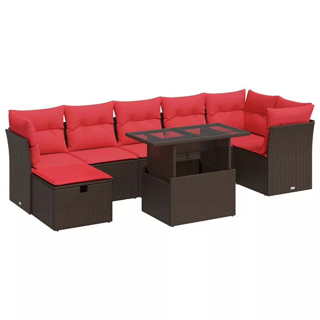 8 db barna polyrattan kerti kanapégarnitúra párnákkal
