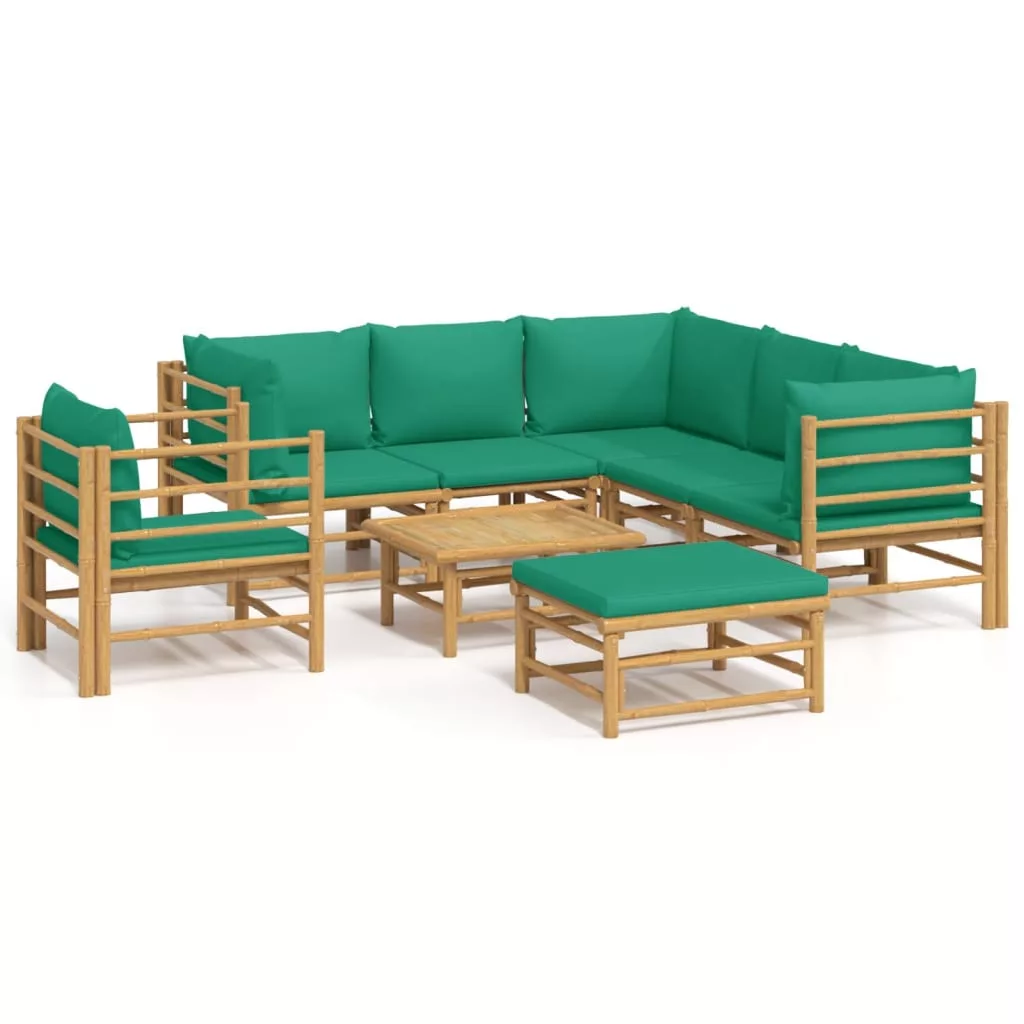 8 részes bambusz kerti ülőgarnitúra zöld párnákkal