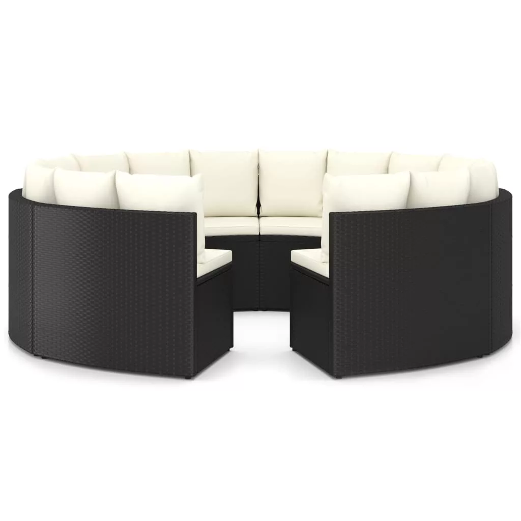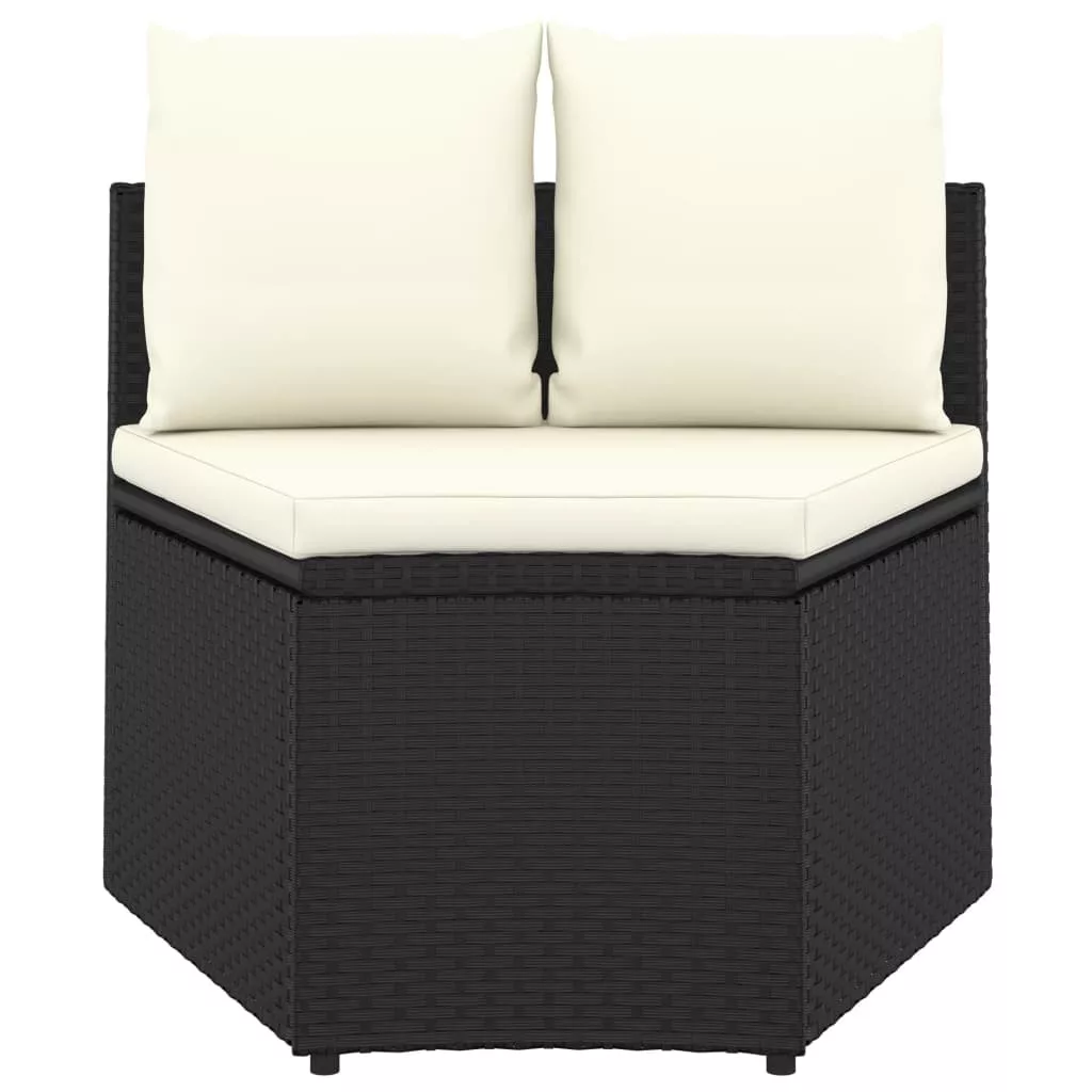 8 részes fekete polyrattan kerti kanapészett párnákkal
