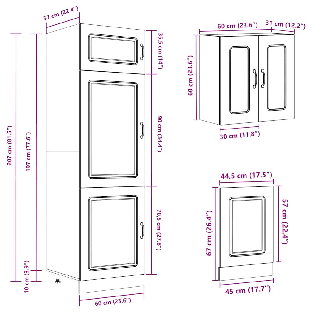 Ez az elegáns kialakítású, nyolcrészes konyhai szekrénygarnitúra optimalizálja konyhája terét, és bőséges tárolóhelyet biztosít személyes tárgyainak! Stabil és tartós anyag: A szerelt fa tartós és stabil anyag sima felülettel, amely ellenáll a nedvességnek, a vetemedésnek és a hasadásnak, így megbízható választás különféle célokhoz.Bőséges tárolóhely: A konyhaszekrénykészlet számos rekesszel rendelkezik, és elegendő helyet kínál tálak, tányérok, edények és egyéb konyhai eszközök tárolására.Állítható lábak: Az alsó szekrények állítható lábakkal rendelkeznek, amelyek magassága a konyha elrendezésének megfelelően állítható.Könnyen karbantartható: A sima felületnek köszönhetően ezek a konyhaszekrények könnyen tisztíthatók nedves ruhával, és kevesebb karbantartást igényelnek. Figyelem:A felborulás elkerülése érdekében ezt a terméket a mellékelt fali rögzítőeszközzel kell használni. Jó tudni:A falon belüli csavar(ok) és dugó(k) nem alaptartozékok. Keressen és használjon a falának megfelelő csavar(oka)t és dugó(ka)t. Ha bizonytalan, kérje szakember tanácsát. Gondosan olvassa el és kövesse a használati utasítás minden lépését.A munkalap, a mosogató és a csaptelep nem tartozéka a szállításnak.