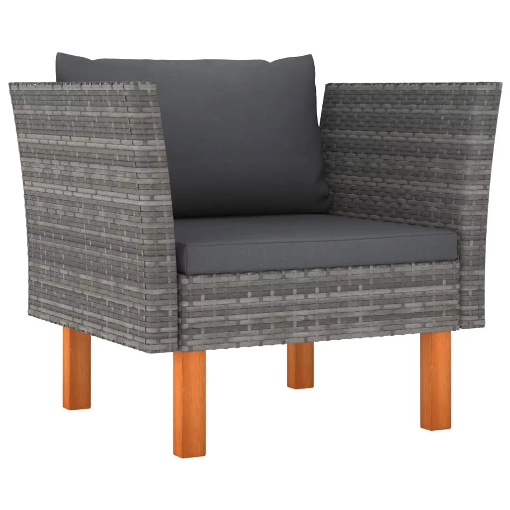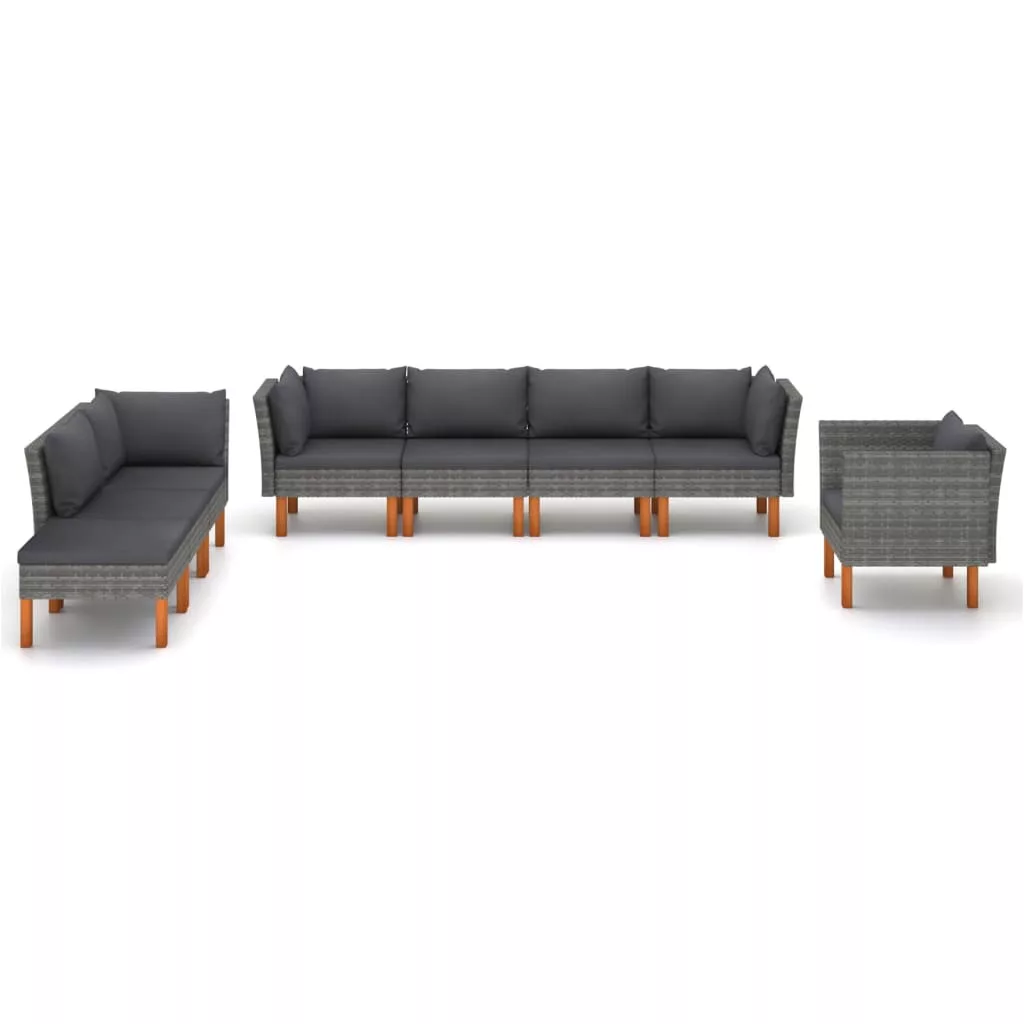 8 részes szürke polyrattan és eukaliptuszfa kerti ülőgarnitúra