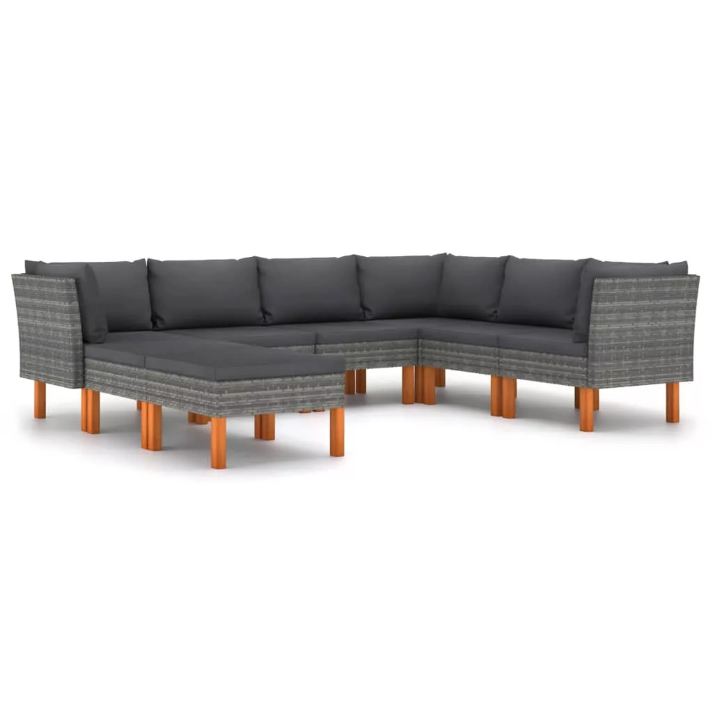 8 részes szürke polyrattan kerti ülőgarnitúra párnákkal
