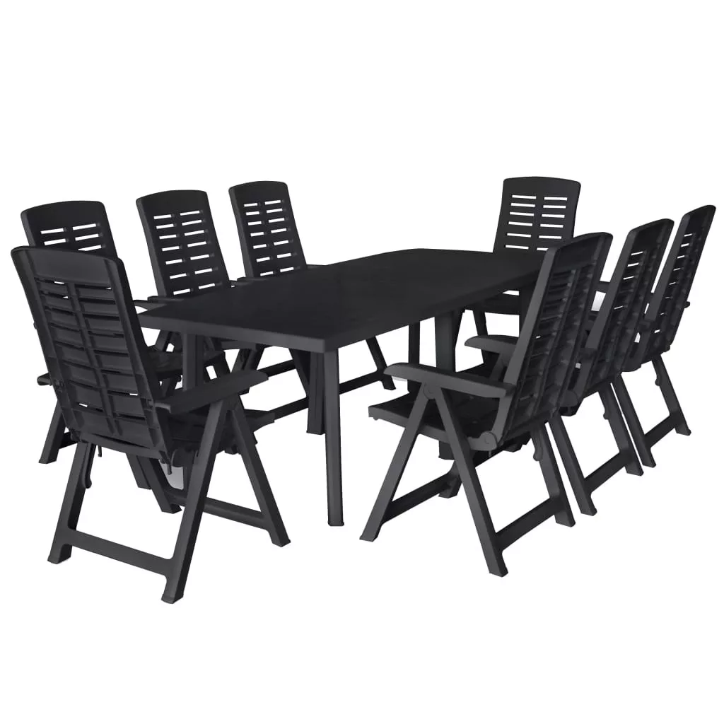 9 részes antracitszürke műanyag kültéri étkezőgarnitúra