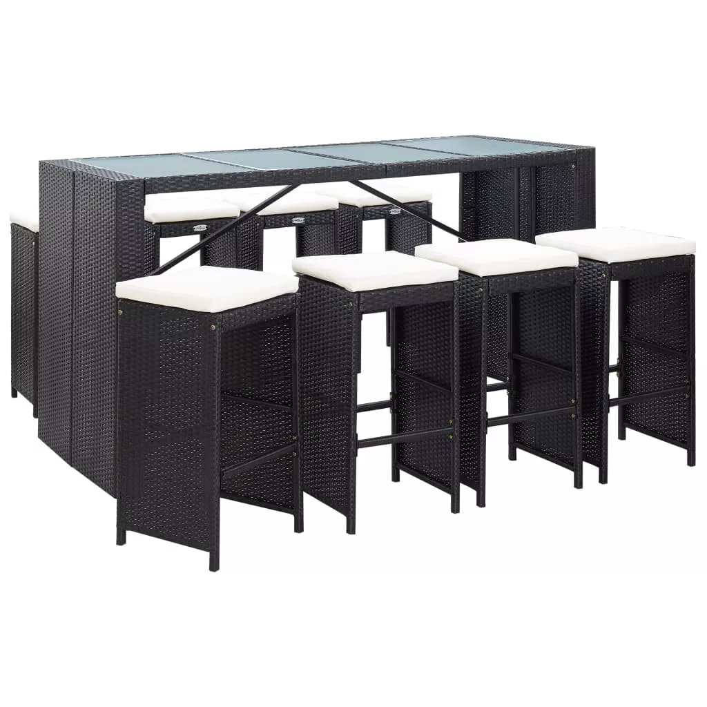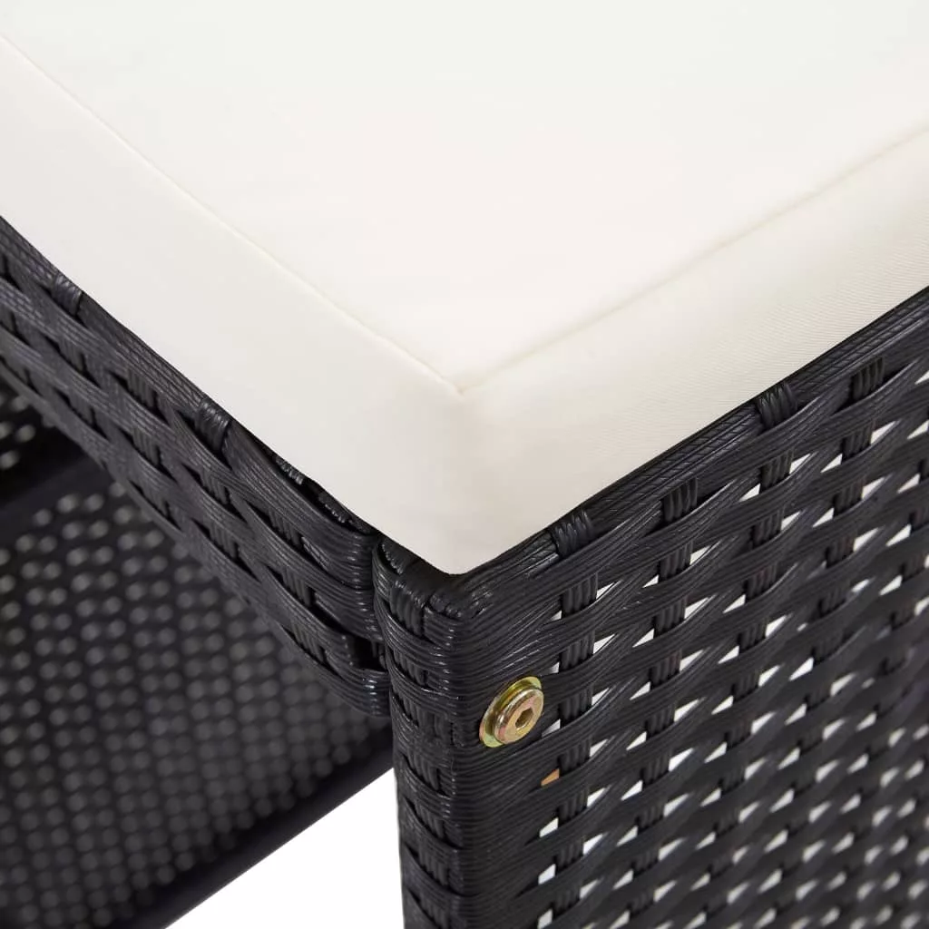 Ez a kültéri polyrattan bárgarnitúra kertje látványossága lesz. A vízálló PE-rattannak köszönhetően a kerti bárgarnitúra könnyen tisztítható, strapabíró, és mindennapos kültéri használatra alkalmas. A szett egy kortárs stílusú asztalt és hozzá illő, elegáns székeket tartalmaz. A porszórt felületű acélváz révén a garnitúra masszív és stabil, de egyúttal könnyű is, így minden elemében egyszerűen átrendezhető az adott hely kívánalmai szerint. A garnitúrát rendkívül kényelmes, vastag ülőpárnákkal szállítjuk, melyek maximális komfortot nyújtanak. A kevés törődést igénylő poliészterhuzat levehető és kimosható. A garnitúra összeszerelése egyszerű. Figyelem: Ahhoz, hogy a garnitúra minél tovább szolgálhassa Önt, eső, hó vagy fagy esetén, kérjük takarja le.