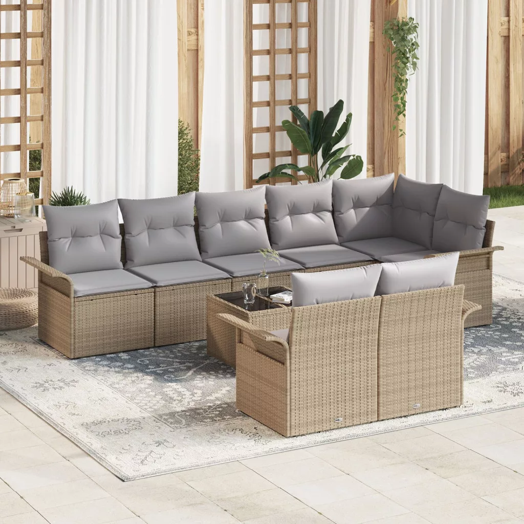 Ez a 9 részes kültéri szekcionált kanapé szett tökéletes helyet ad a lazításhoz és a barátokkal való találkozáshoz, ötvözve a stílust és a praktikusságot. Tökéletes a teraszokra vagy kertekbe, modern stílusa bézs és szürke színekben tükröződik, így nagyszerű választás bármilyen kültéri területre.