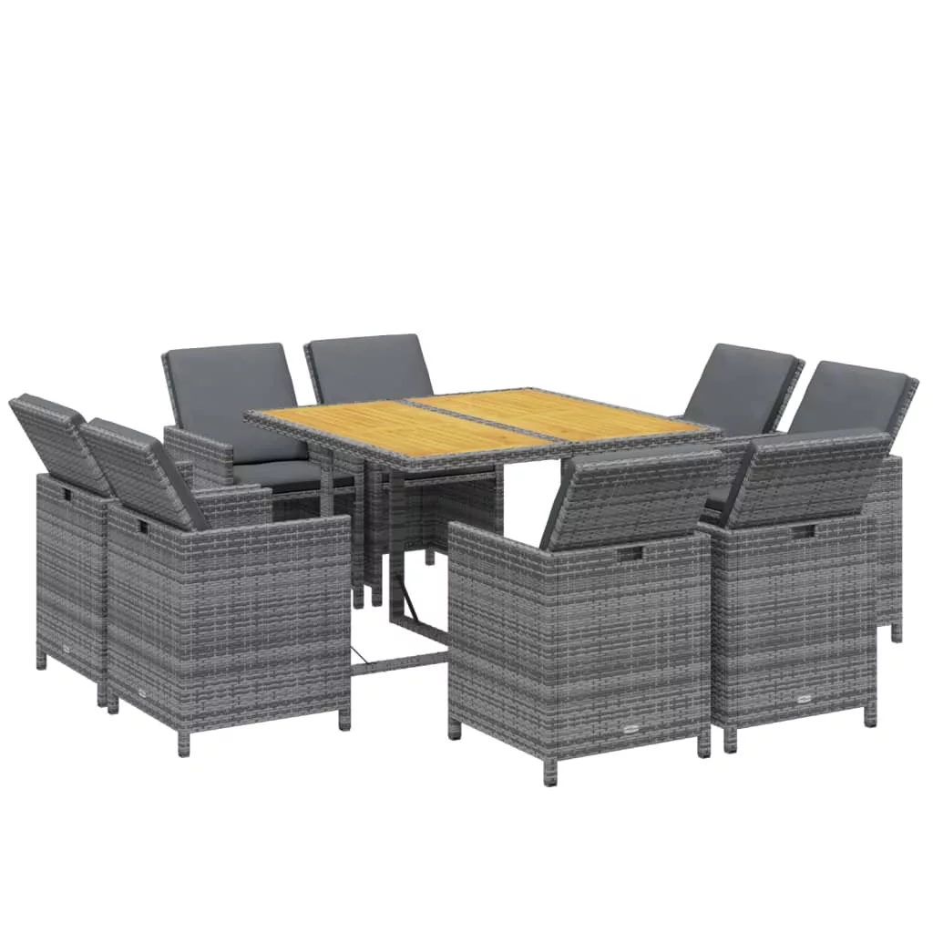 Ez a klasszikus kerti étkezőgarnitúra elegáns, modern megjelenésével nagyszerű választás a kertben való pihenéshez vagy szabadtéri étkezésekhez. Kültéri használatra alkalmas: Az időjárás-és vízálló polietilén rattannak köszönhetően a kültéri étkezőgarnitúra könnyen tisztítható, kopásálló, és mindennapi használatra alkalmas. Masszív váz: A porszórt acél váznak köszönhetően a terasz-étkezőgarnitúra masszív és tartós. Kényelmes ülőfelület: A vastag, puha, habszivaccsal töltött ülő- és hátpárnák tovább növelik a székek kényelmét. Rugalmas kialakítás: A háttámlát ledöntheti és az asztal alatt tárolhatja a székeket, így értékes tárolóhelyet takaríthat meg, ha nem használja a készletet. A könnyűsúlyú szerkezetnek köszönhetően minden bútordarab könnyen mozgatható. Megjegyzés:Kerti bútora élettartamának meghosszabbítása érdekében javasoljuk, hogy védje vízálló takaróval.