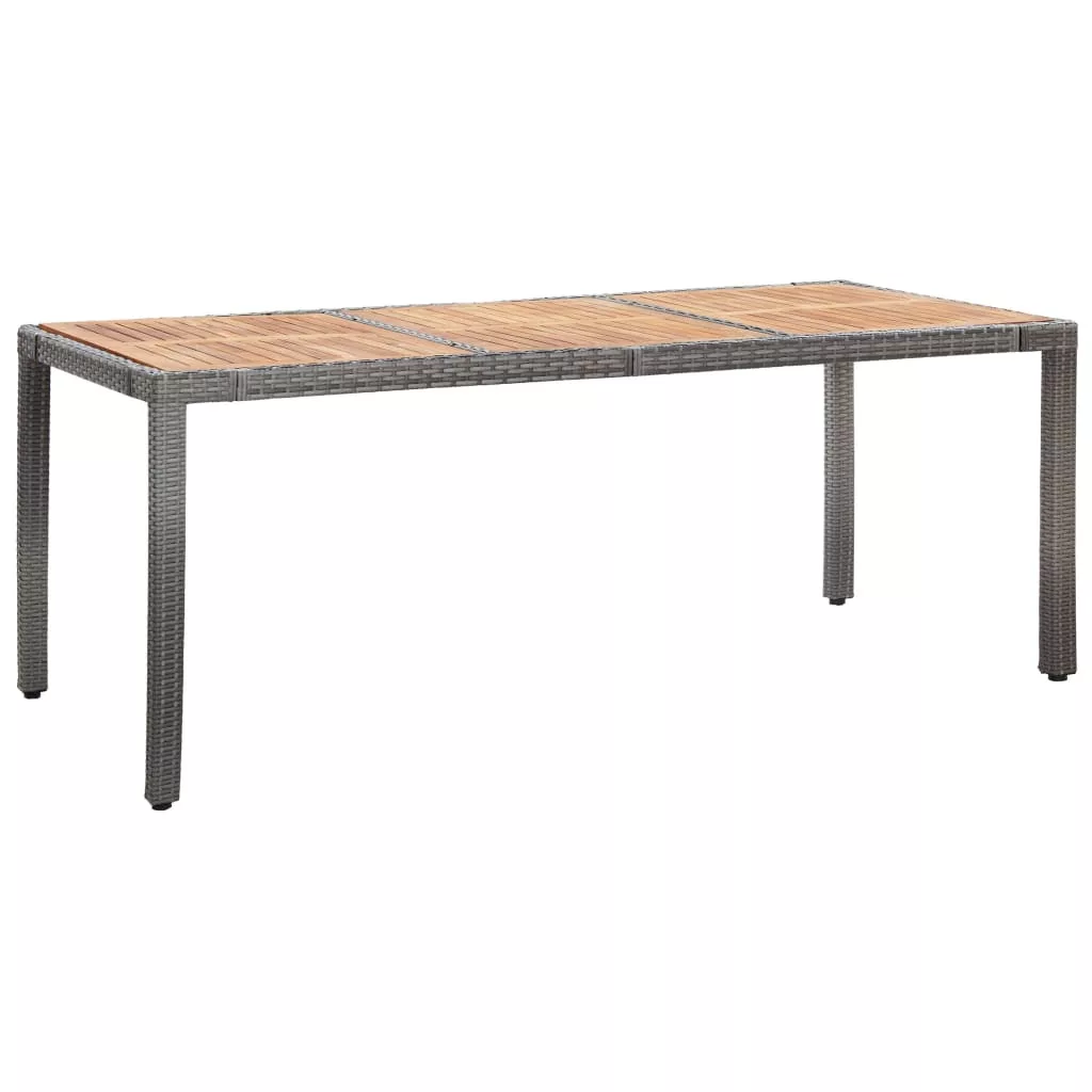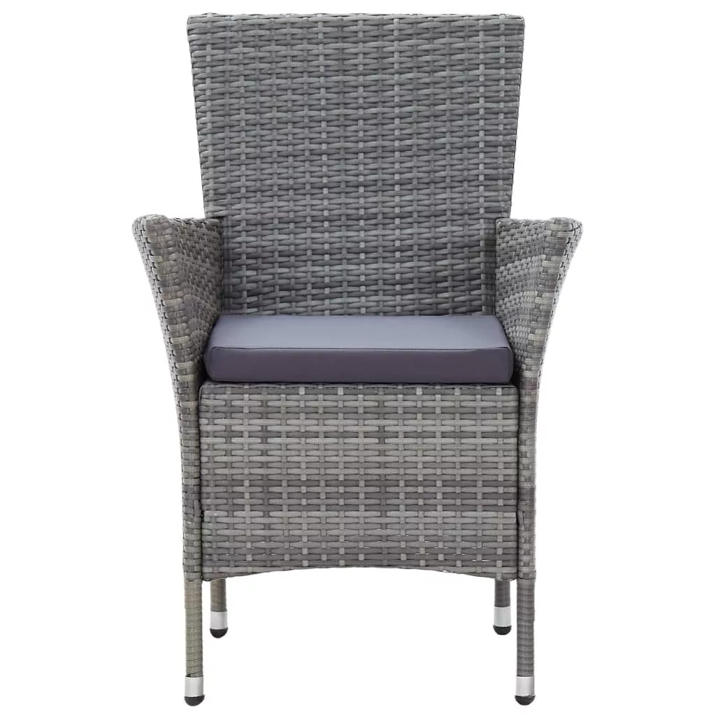 Kényelmes polyrattan étkezőgarnitúránk tökéletesen ötvözi a stílust és a praktikumot. Ez a garnitúra kertje vagy verandája fénypontja lesz. A vízálló PE rattannak köszönhetően az étkezőgarnitúra könnyen tisztítható, strapabíró, és kültéri használatra alkalmas. A porszórt felületű acélból készült váz a bútordaraboknak nemcsak a stabilitását, de tartósságát is garantálja. A szett része az elegáns székekhez illő, tömör akácfa lappal ellátott étkezőasztal. A habszivaccsal vastagon kitömött, levehető párnák maximális kényelmet nyújtanak. A kevés törődést igénylő poliészter párnahuzatok könnyen levehetők és kimoshatók. Ez a kerti garnitúra könnyen összeszerelhető. Figyelem: Ahhoz, hogy a garnitúra minél tovább szolgálhassa Önt, eső, hó vagy fagy esetén, kérjük takarja le.