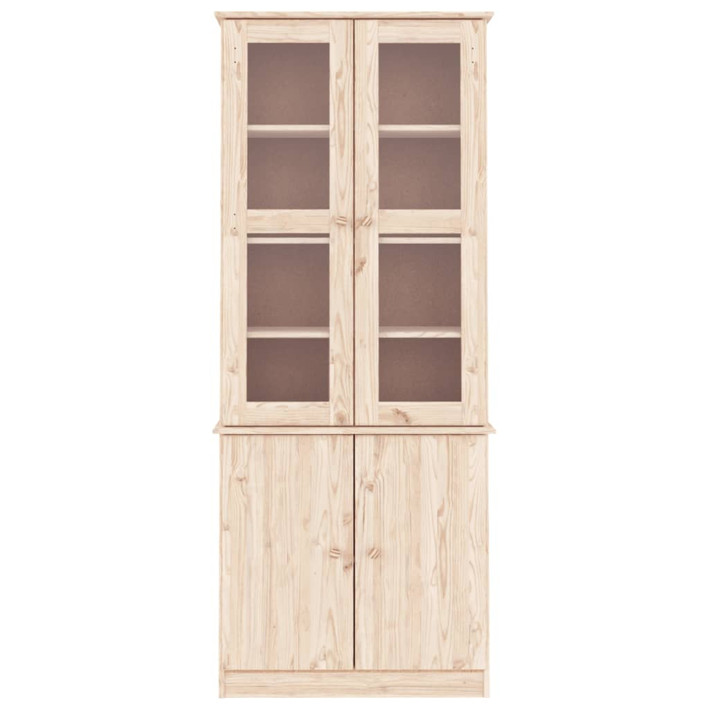 Ez az üvegajtós vitrinnel ellátott szekrény ideális megoldást kínál könyvei rendezett tárolásához, miközben rusztikus bájt csempész az enteriőrjébe. Tömör fenyőfa: A tömör fenyőfa egy gyönyörű természetes anyag. A fenyőfa egyenes erezetű, a csomók pedig jellegzetes, rusztikus megjelenést biztosítanak az anyagnak. A tömör fenyőfából készült vitrines szekrény strapabíró és masszív.Bőséges tárolóhely: Ez a polcokkal felszerelt üvegajtós szekrény bőséges helyet biztosít a csészék, edények és kisebb dísztárgyak rendezett tárolásához.Praktikus ajtók: Tartsa rendben környezetét azzal, hogy a kisebb tárgyakat a szekrény ajtajai mögé rejti.Könnyen karbantartható: Az üvegvitrines szekrény könnyen tisztítható nedves ruhával, és kevesebb karbantartást igényel.Fa gombok: A polcos szekrényhez fa gombfogantyúk tartoznak, amelyek megkönnyítik a szekrény kinyitását és zárását, miközben tovább növelik a szépségét.Kezeletlen felület: Mivel a könyvtároló szekrény tömör fenyőfából készült felületkezelés nélkül, meghagyhatja a természetes színét, de tetszés szerint festheti vagy lakkozhatja is. Figyelem:A felborulás elkerülése érdekében ezt a terméket a mellékelt fali rögzítőeszközzel kell használni.