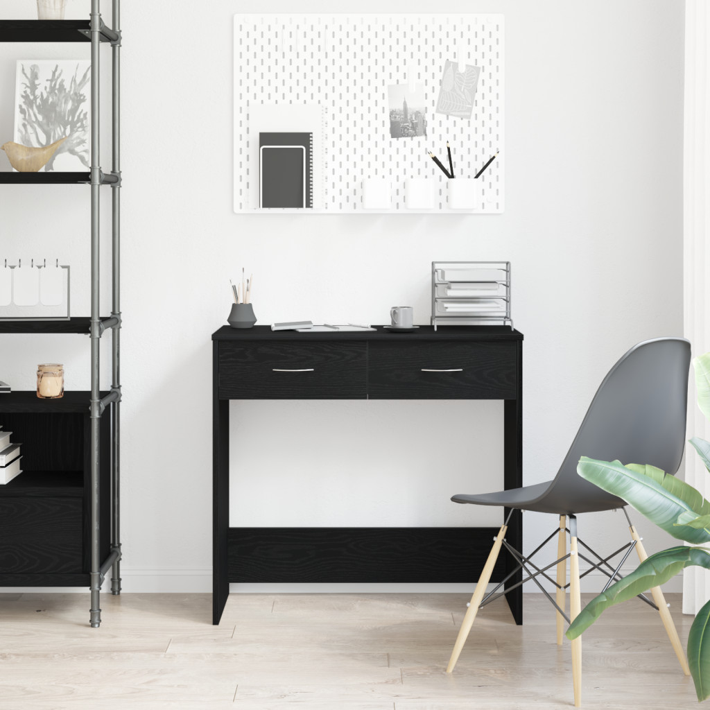 Ez a trendi íróasztal ötvözi a funkciót és a modern stílust, kötelező darab otthonra és irodába. A tartós műgyanta fa anyag tágas asztallapja ideális írásra, tanulásra vagy laptopozásra, feldobja a nappalit, tanulót vagy munkateret elegáns fekete tölgy bevonatával.